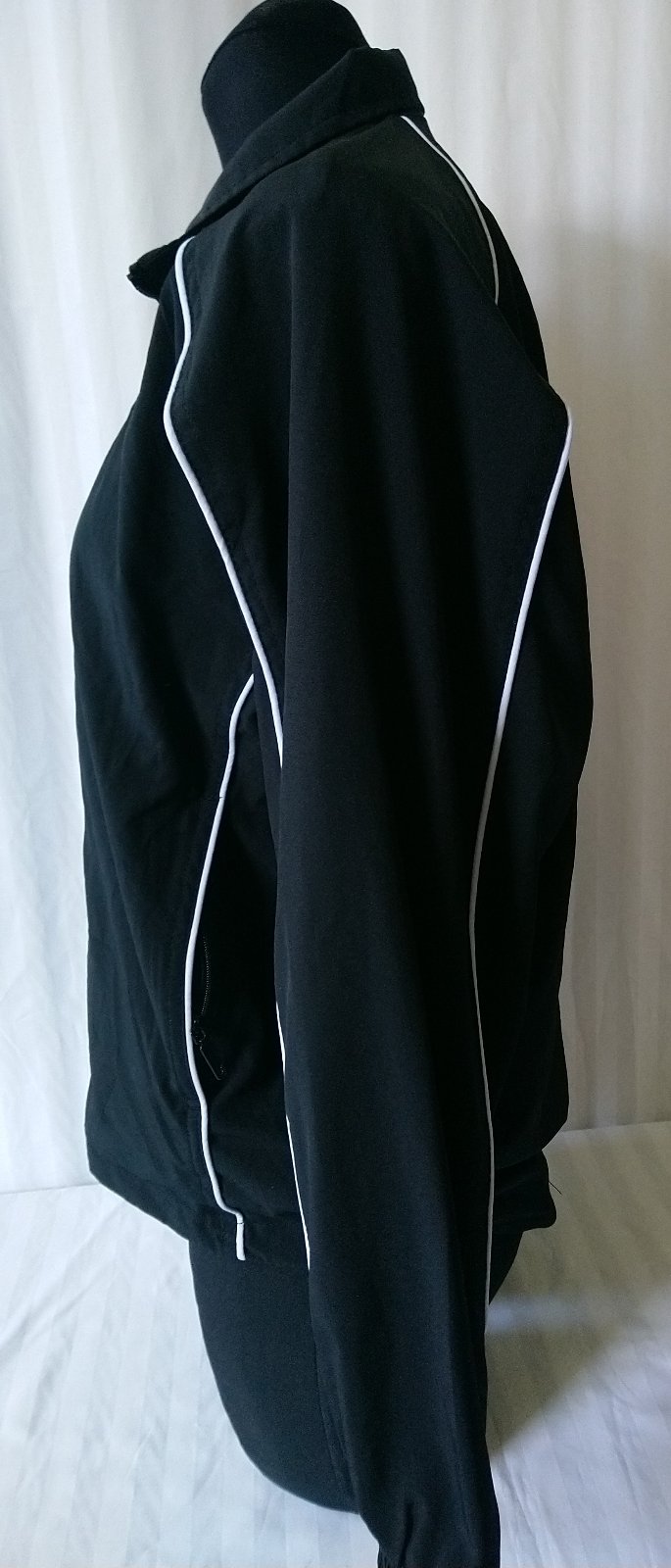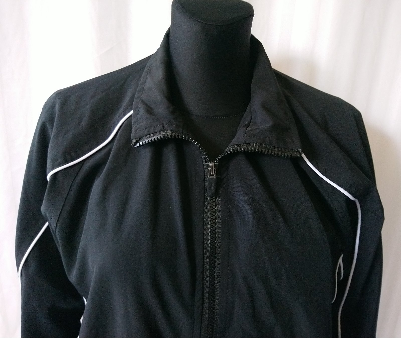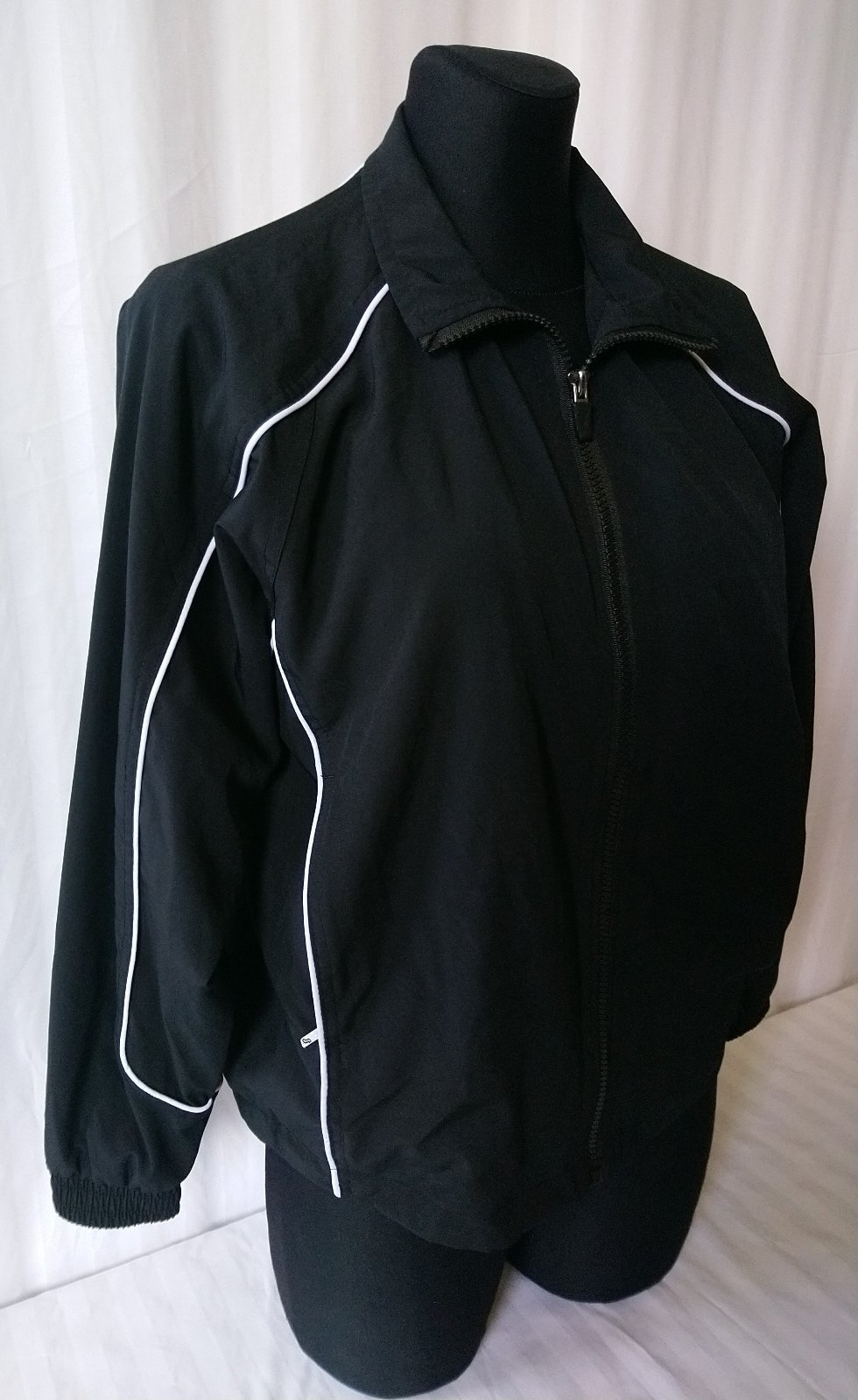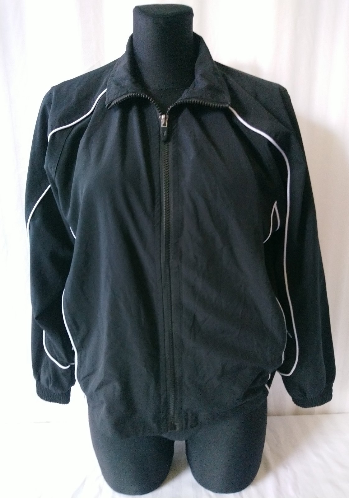 dievčenská čierna šuštáková vetrovka s bielymi pásikmi, zapínanie na zips, vrecká, na zips, tenká podšívka, ,