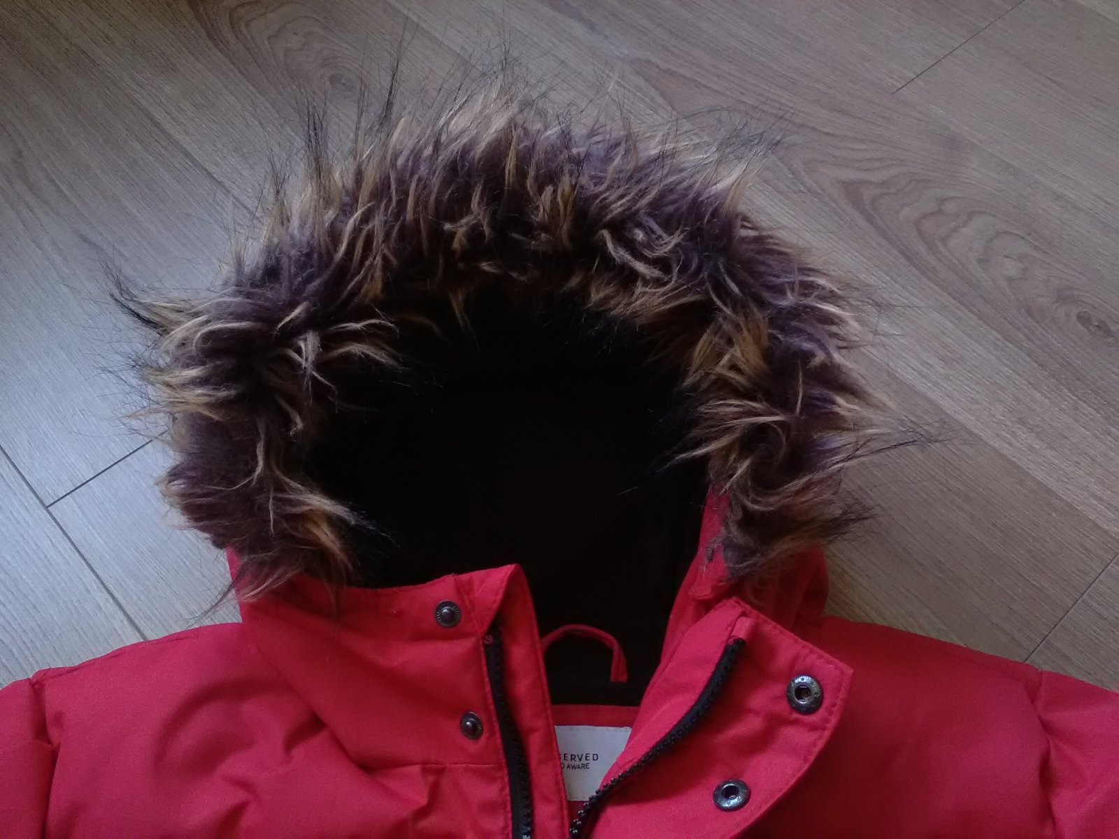 Predám hrubšiu zimnú bundu Reserved vo veľkosti 164 po jednom dieťati vo výbornom stave, bez akýchkoľvek poškodení. Bunda je podšitá flisom. Kožušina na kapucni sa dá odopnuť. Rukávy majú patent. Spodná časť má šnúrku na stiahnutie. Bunda má vnútorné vrecko na zips.