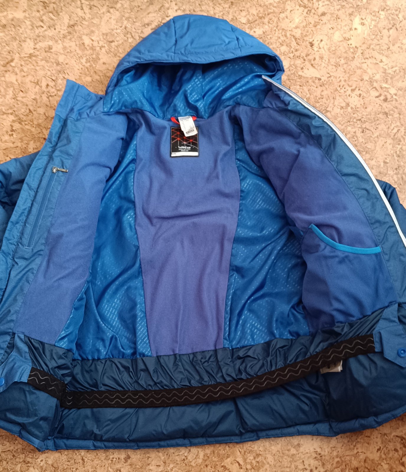 Krásna zimná bunda vhodná aj na lyžovačku. Veľmi teplá, hrubá, bez chýb. Kapucňa pevná. Zipsy, suché zipsy plne funkčné . Veľkosť 153/162 - na 14 rokov