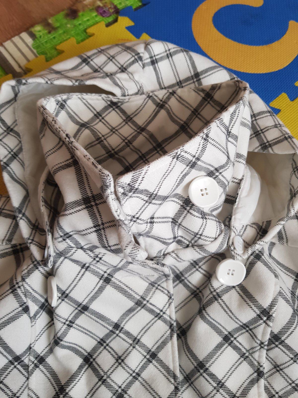 Kràsny teplučký kabát v top stave.Veľkosť písaná XL ale je to určite menšie,ja nosím veľkosti M.Kapucňu sa dá odopnúť.Dĺžka 68 cm,pod pazuchami 51 cm.