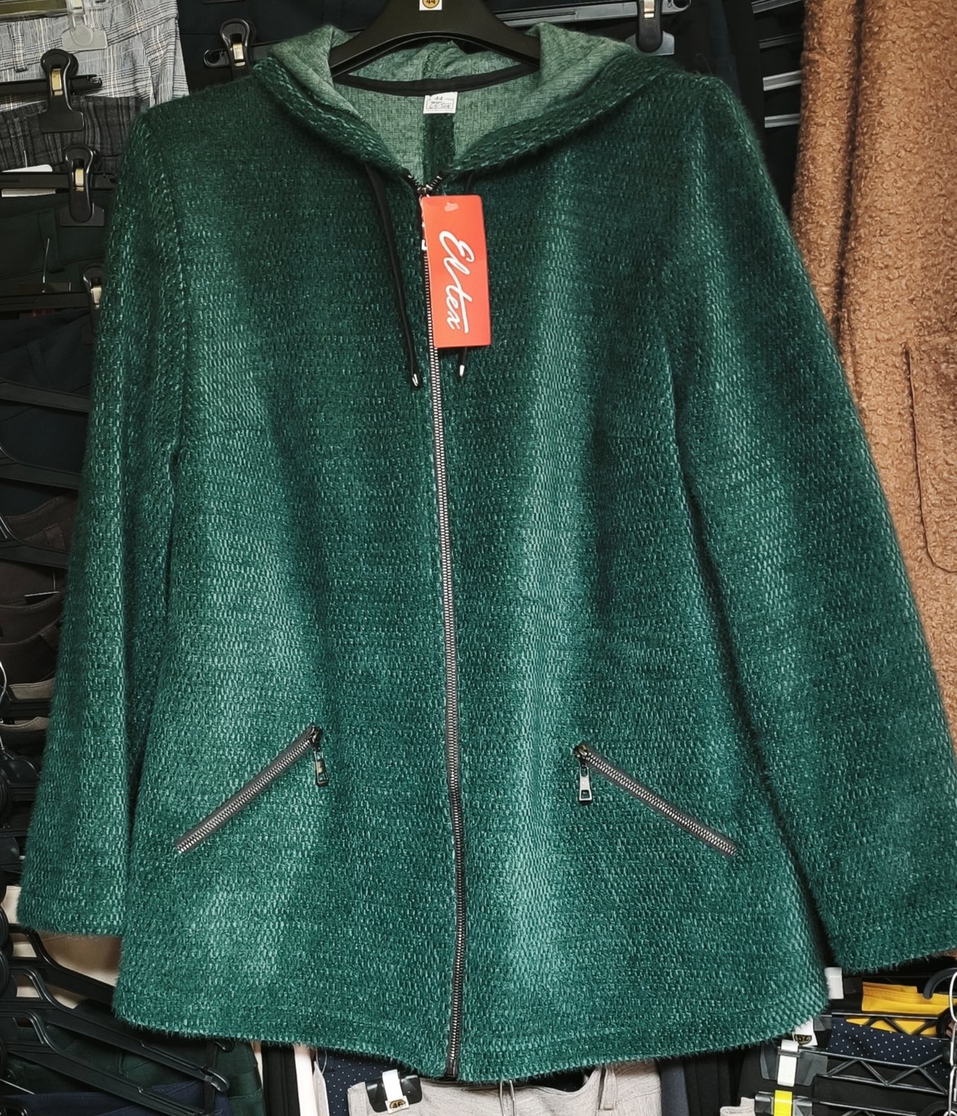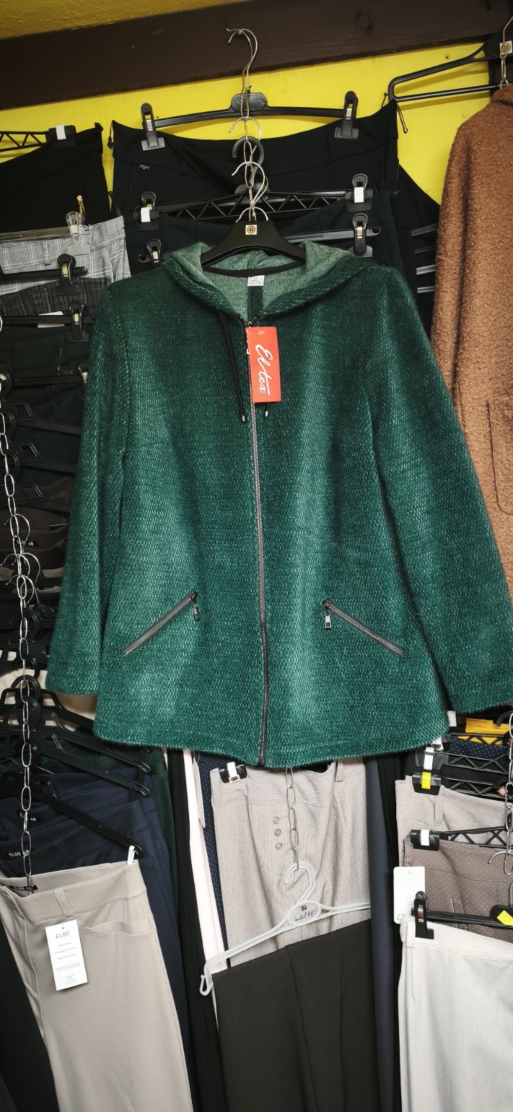 Kabát vyrobený z veľmi módneho a mimoriadne príjemného materiálu.