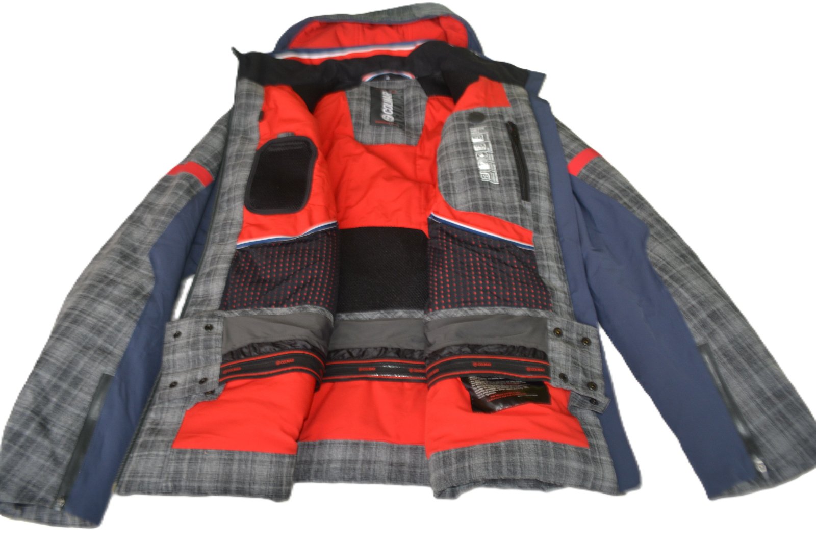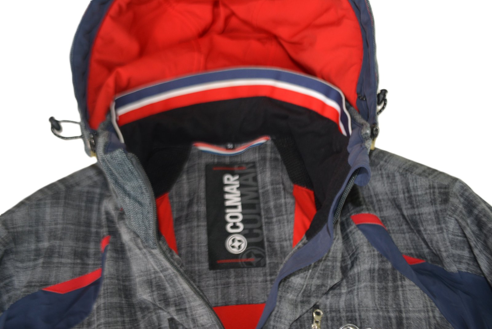 Pánska kvalitná bunda zn. Colmar - originál, veľ. XXL - rozmery: dĺžka 75cm, pod pazuchami 2x65cm, rukáv od krku 87, od pleca 69 a od pazuchy 52cm. Kombinácia farieb sivá, modrá a červená.