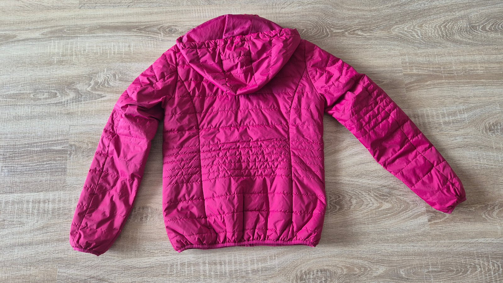 Prechodná bunda, vhodná na jeseň / jar, je podšitá aj jemne vatovaná, materiál šuštiak. Farba je ružová, o málinko tmavia ako na fotkách (nie je až taká krikľavá, skôr tmavo ružová. Dolný okraj je jemne stiahnutý gumičkou. Výborný stav, bez poškodenia. Zadná dlžka 64, šírka cez prsia 50x2, dolná šírka ako je gumička 48x2, dlžka rukáva od krku 78.