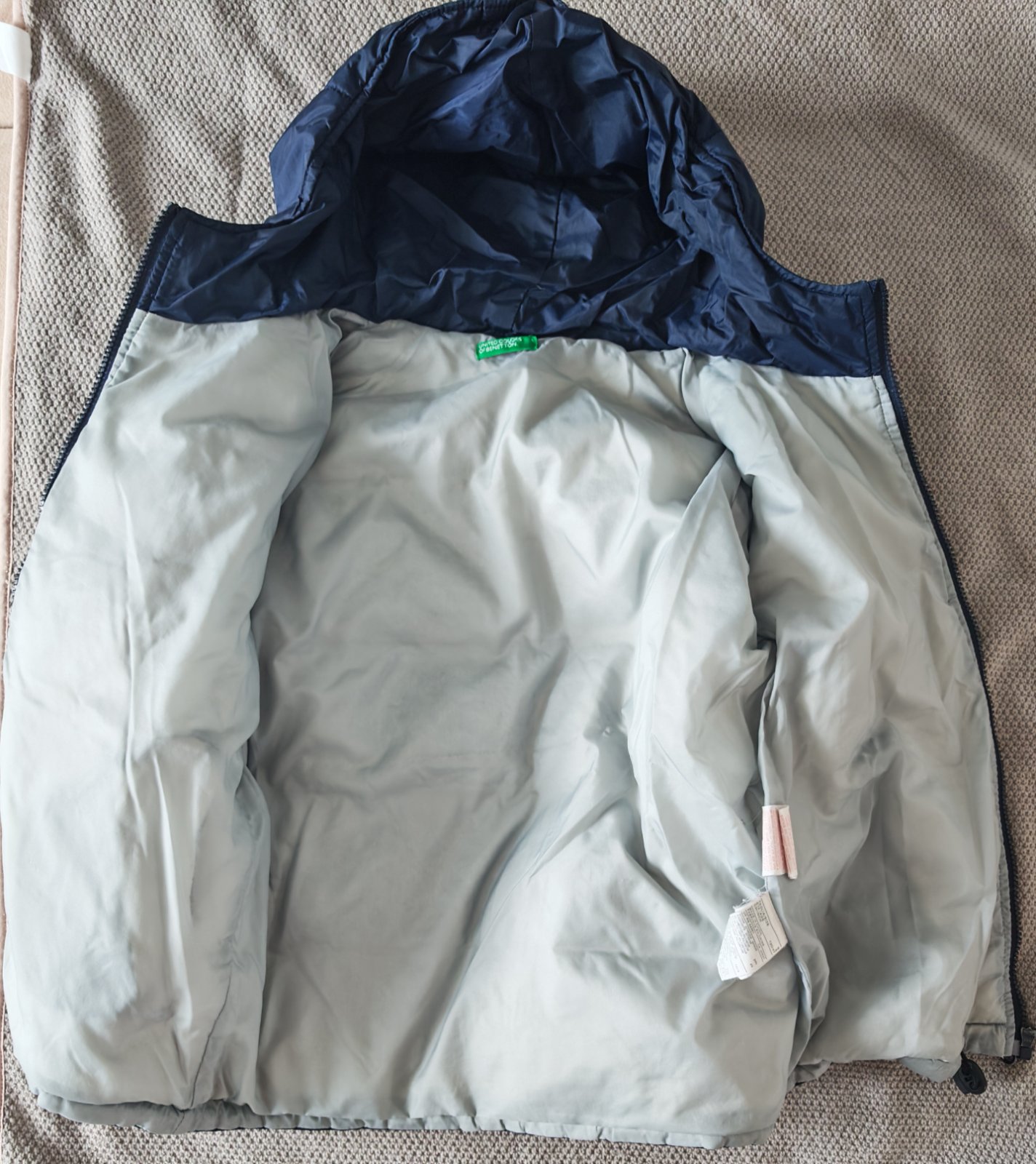 Predám zimnú páperovú bundu (50% perie, 50% páperie). Veľkosť 120-130 - Benetton číslovanie. Pekný nosený stav, šuchnuté rukávy, viď foto (nemá vplyv na funkčnosť). Cena 5€