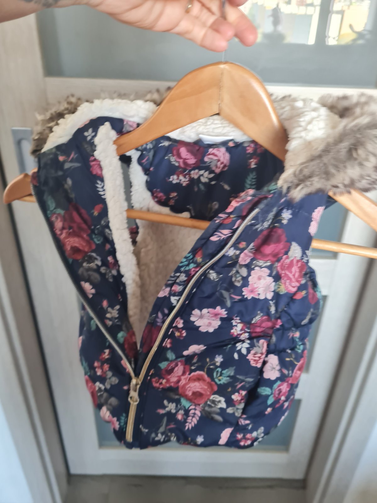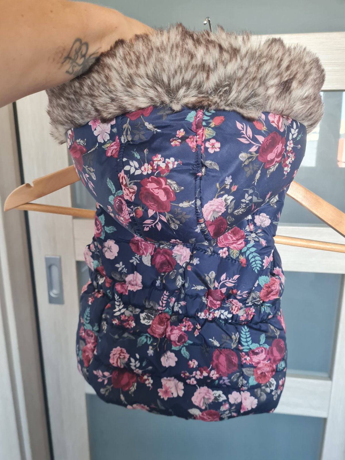 Pekná vesta, zn.F&F , vel.písaná 86...ale je väčšia,malá ju nosila ako 92/98. Málinko ošúchaná farba na bežci ( nič hrozné) ...inak výborný stav.
