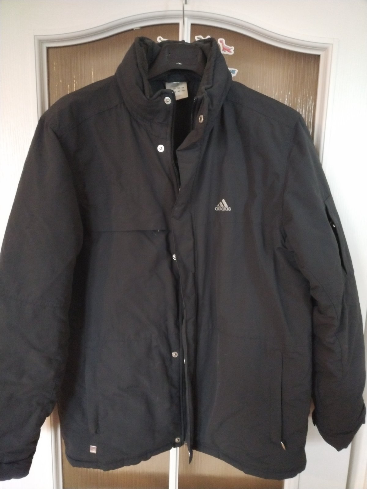 Zimná veľmi tepla vetrovka adidas. Veľkosť sedí aj na Lko.má jedno poskodenie,posledná foto. Malička vypálená dierkami rukáve