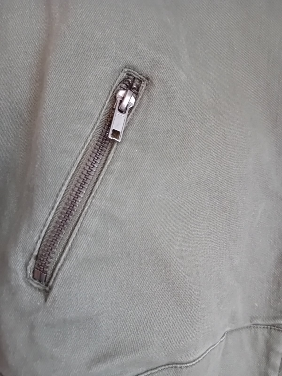 Bunda v dobrom nosenom stave. Farba je ťažko identifikovateľná, taká hnedo-zeleno-sivá.
