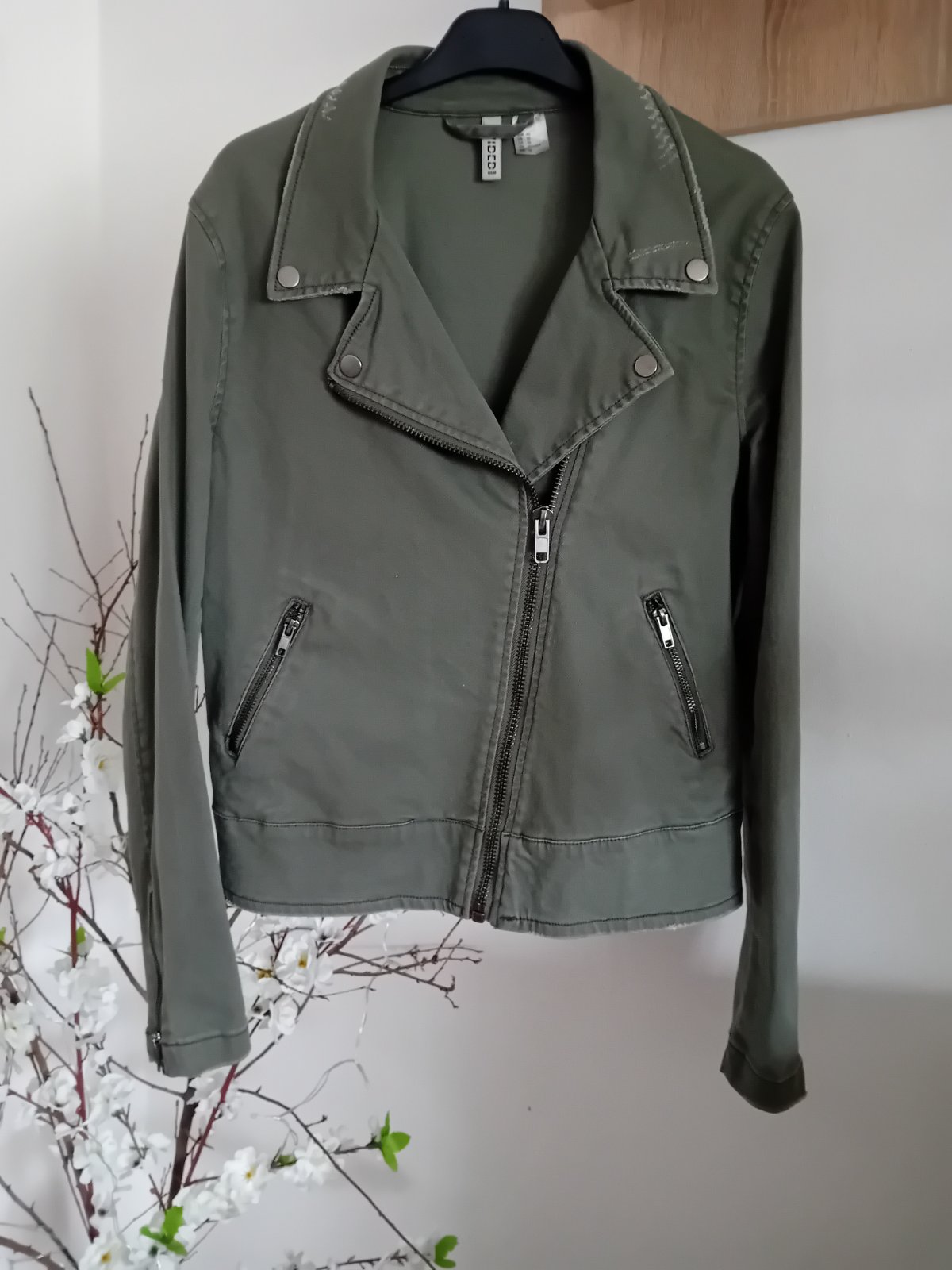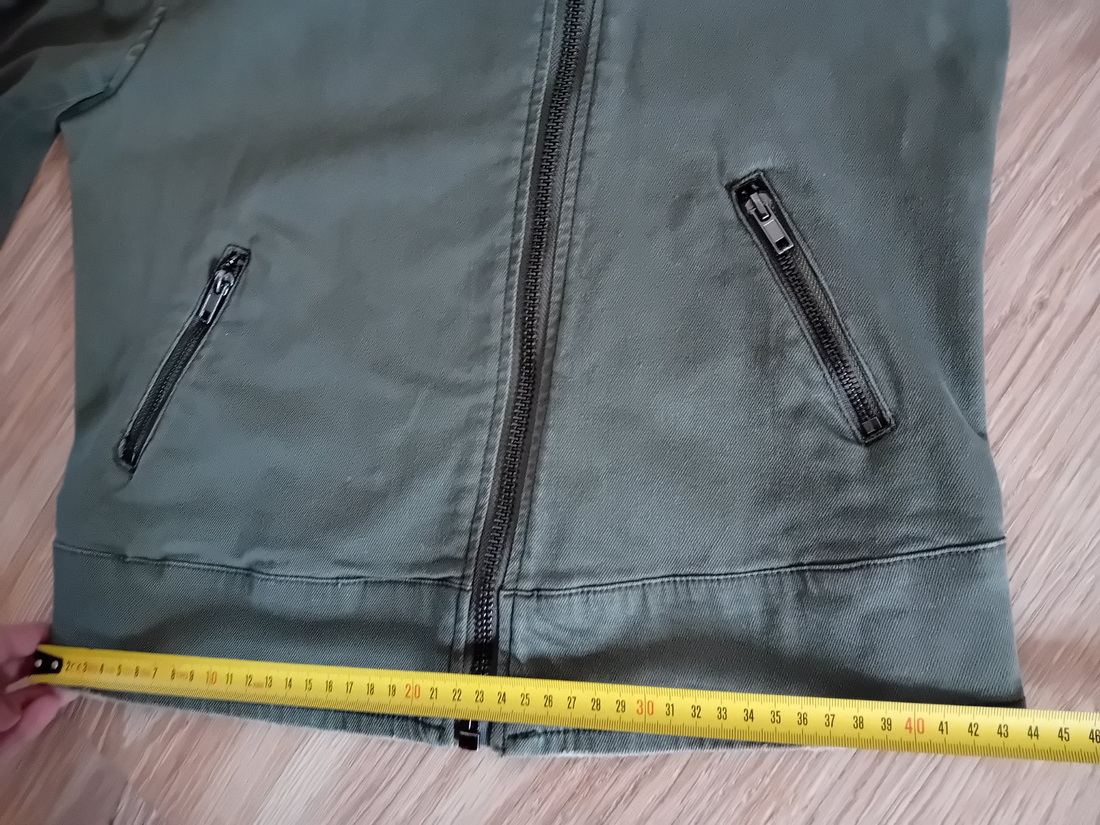 Bunda olivovej farby ako nová na miernejsiu zimu. P: 48 / D: 65/ R: 64 C.40