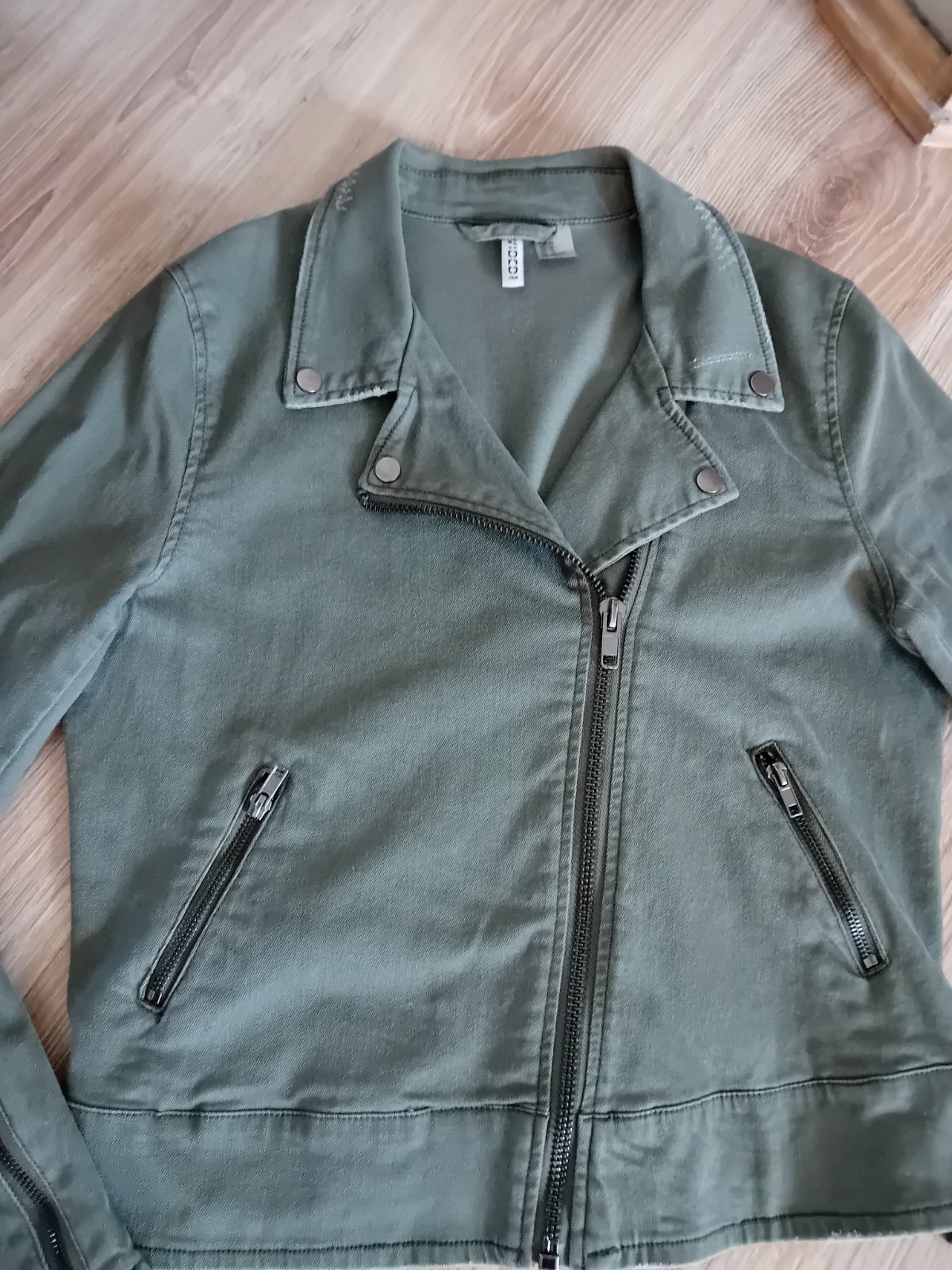 Veľmi pohodlná bunda, so sťahovaním v páse, kapucna v golieri, cd 79 cm, v podpazuší 52 cm, rukáv buď dlhy alebo 7/8, bez poškodení, cena 13€ + posta