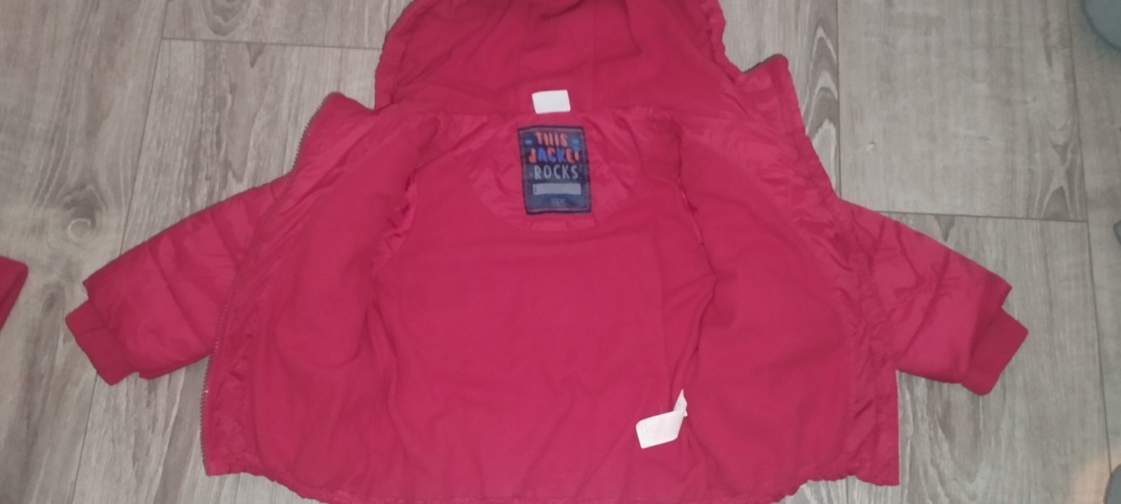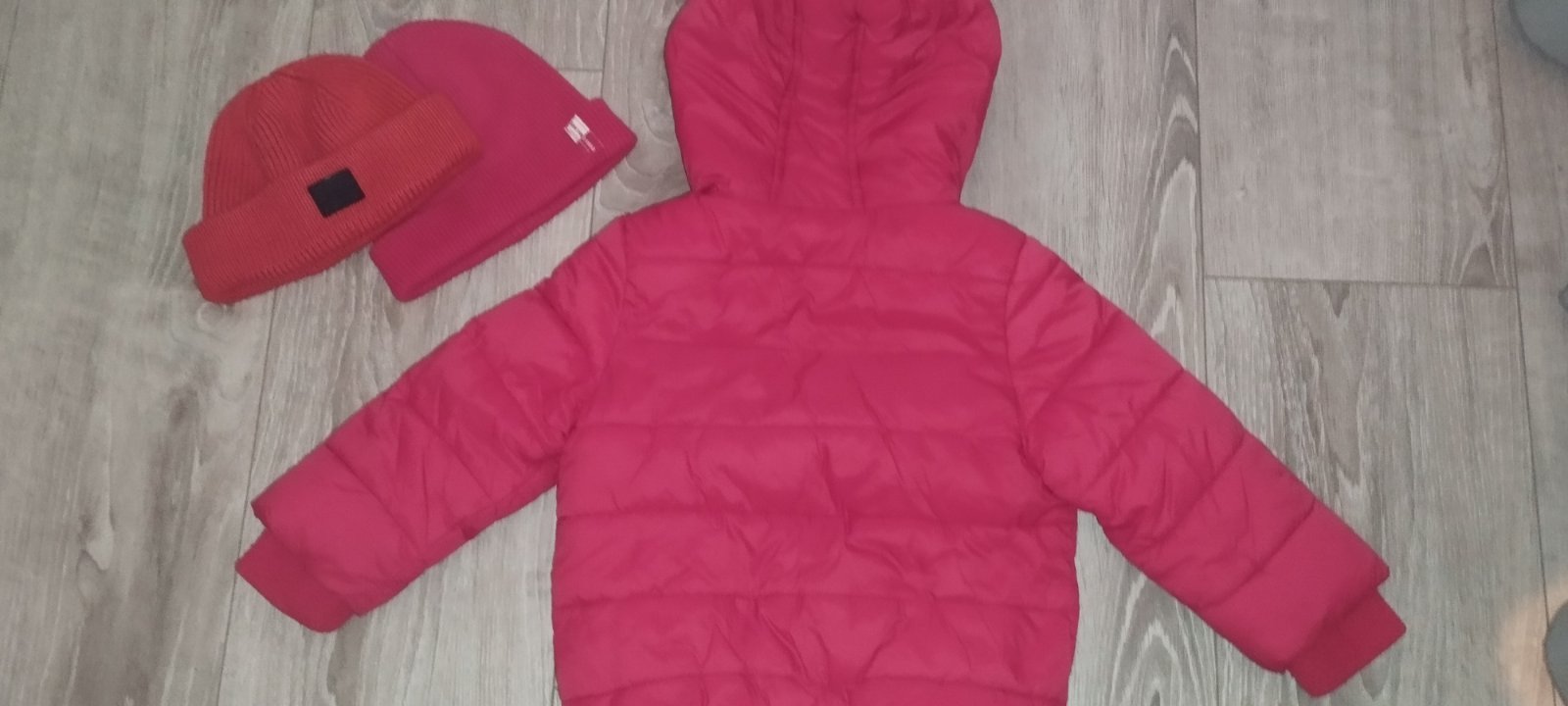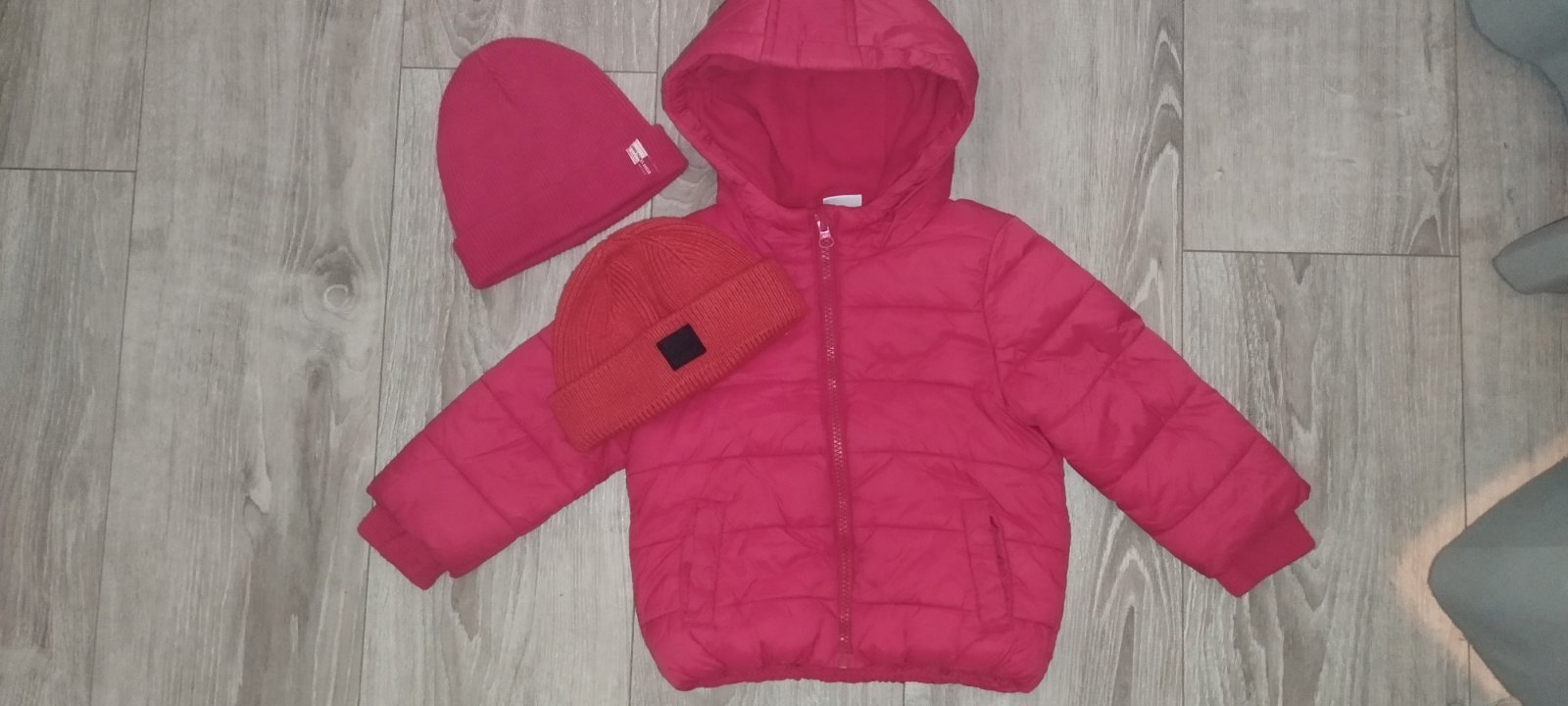 Predám hrubšiu bundu v peknom stave, veľ.86 (12-18mes.) plus 2x čiapku, jedna Zara druhá neviem