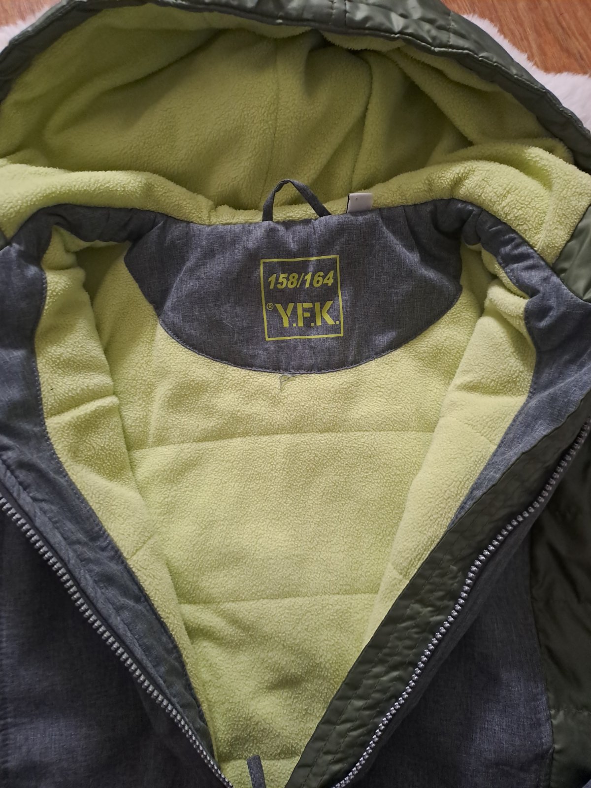Málo nosená, predĺžený strih, kapuca s kožušinou, bez chýb 12/13 rokov
