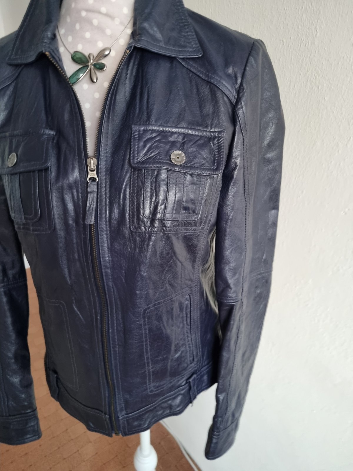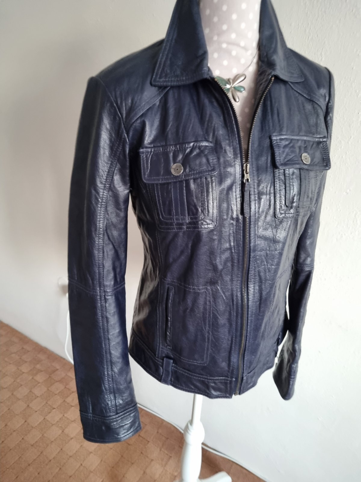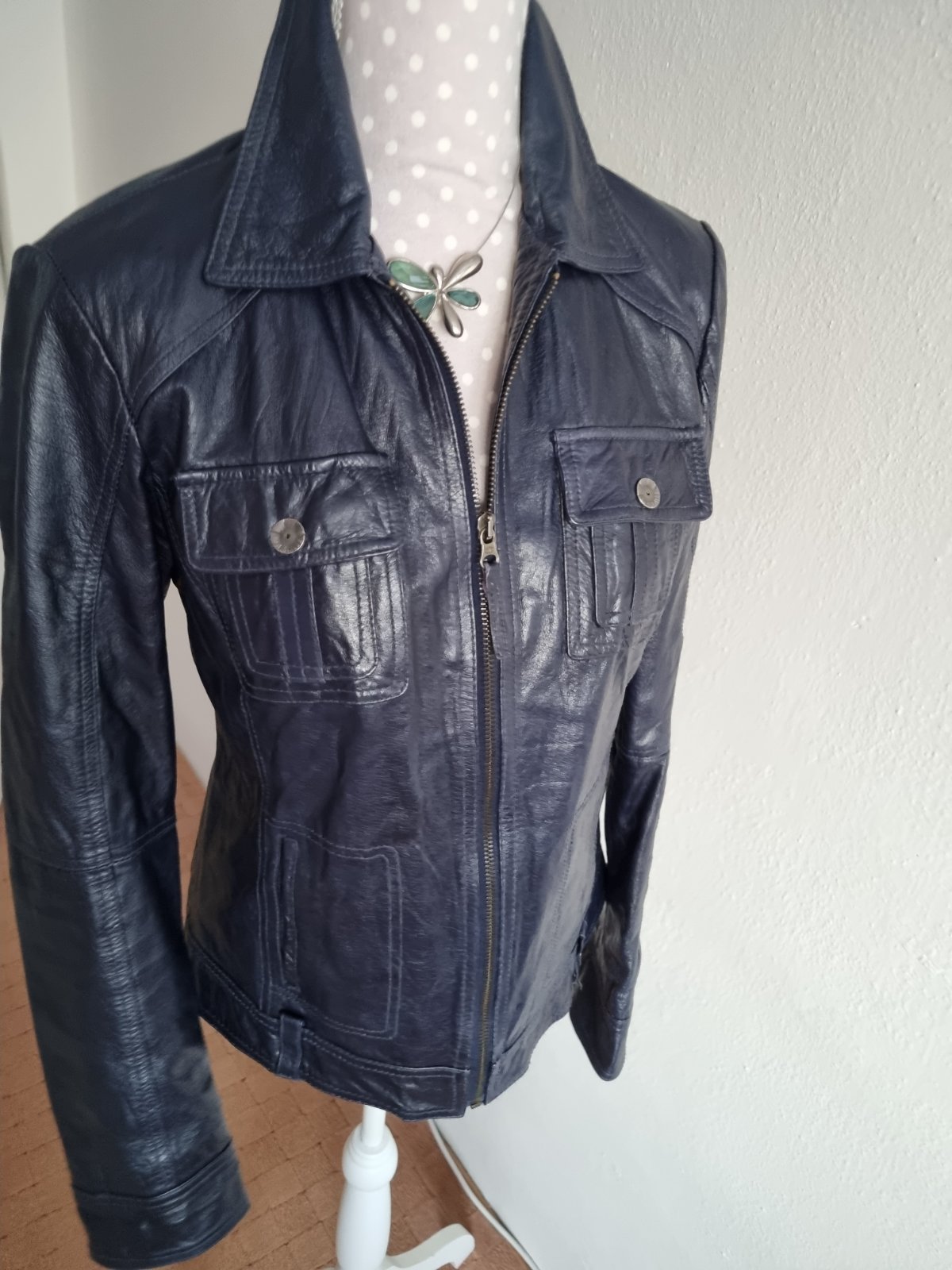 Tmavomodrá kožená bunda Tom Tailor veľ. 38