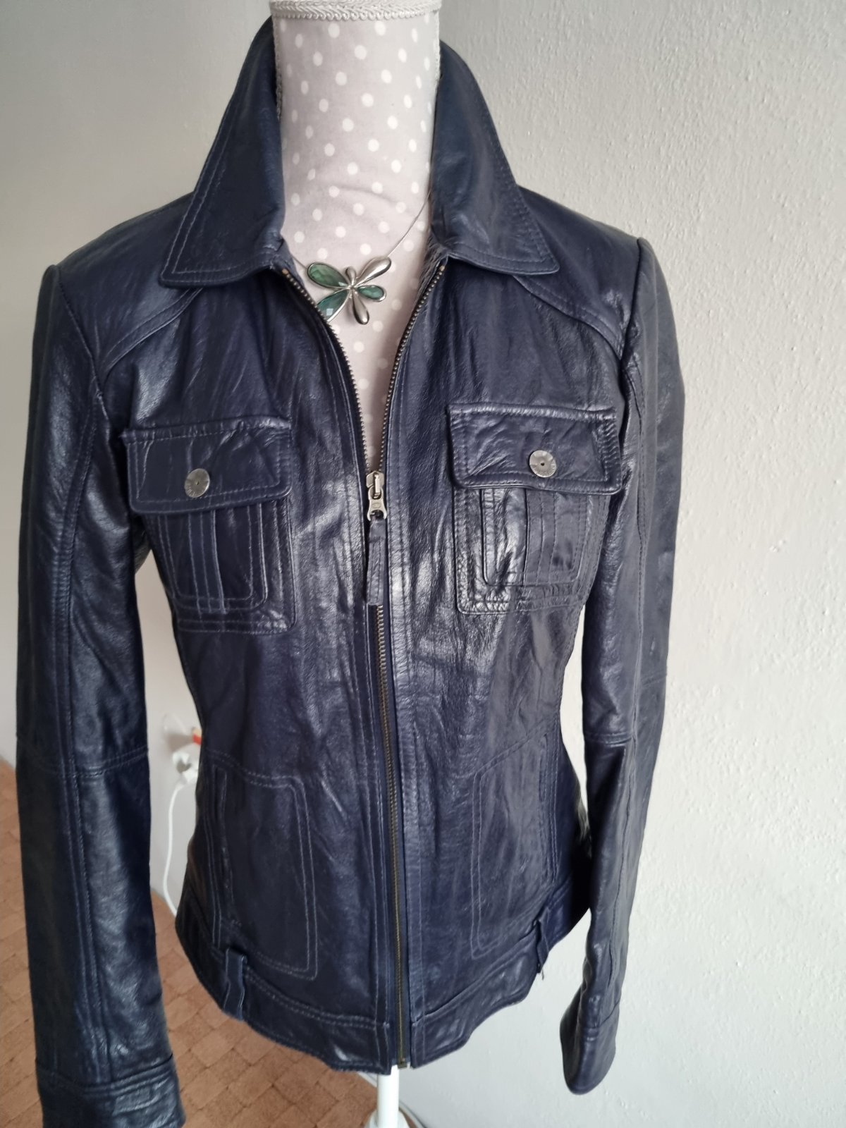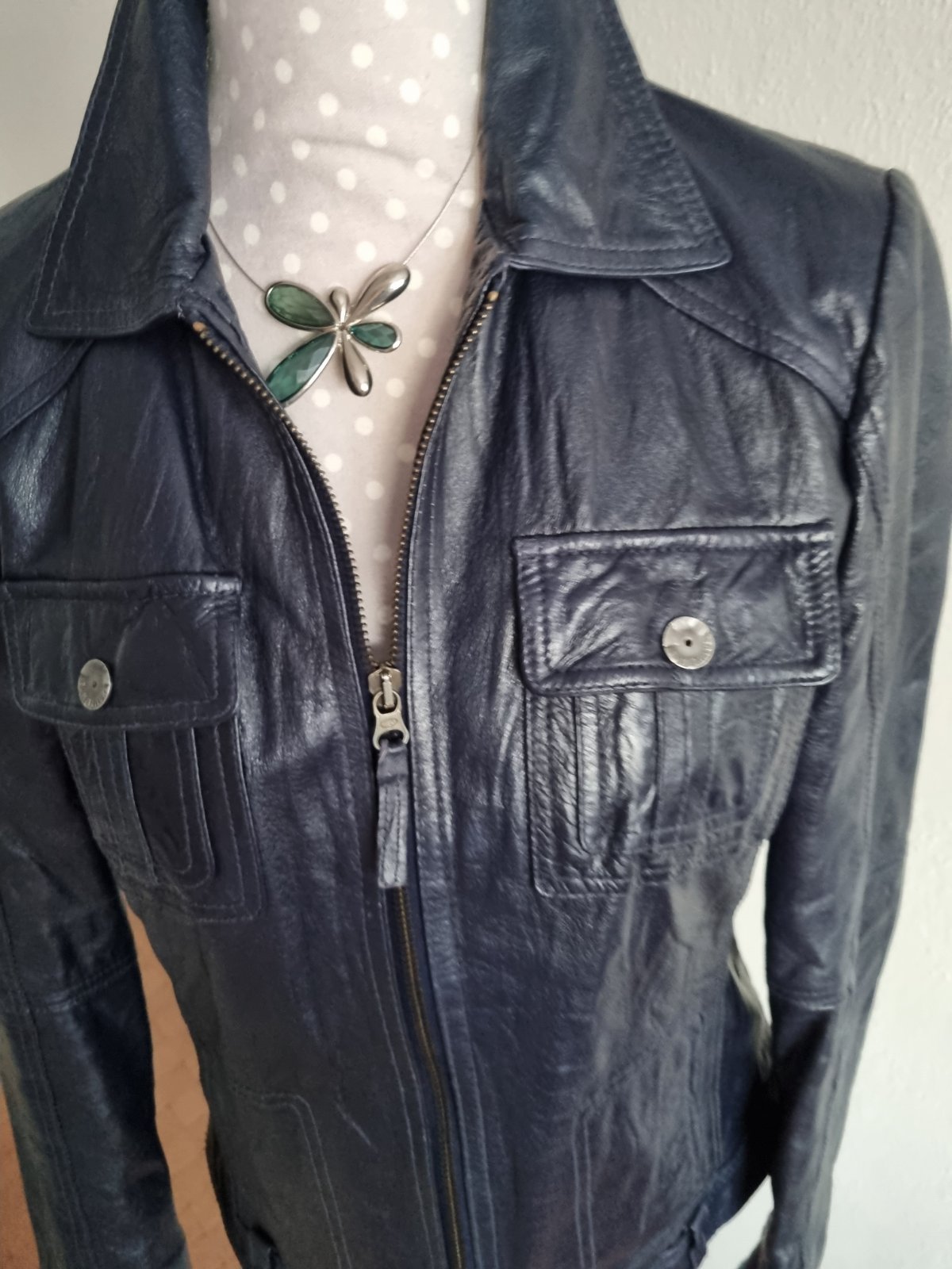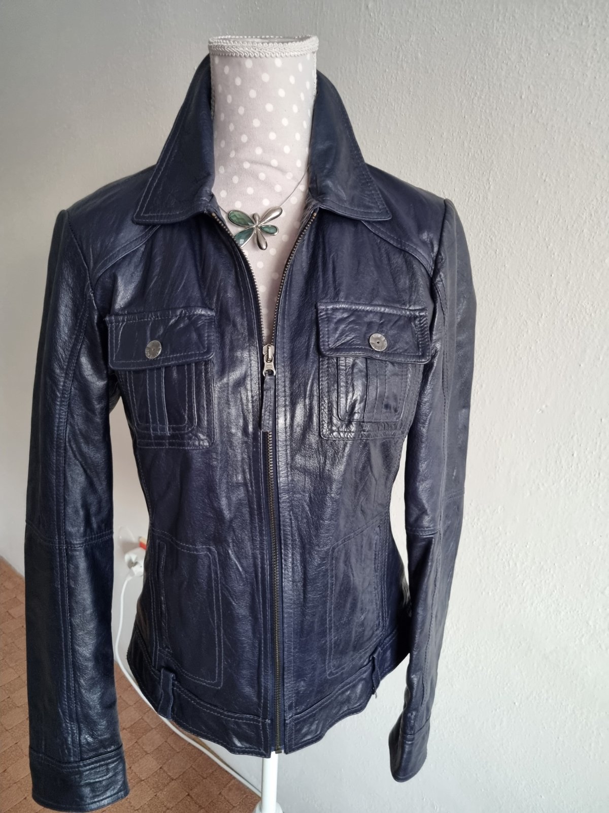 Tmavomodrá kožená bunda Tom Tailor veľ. 38