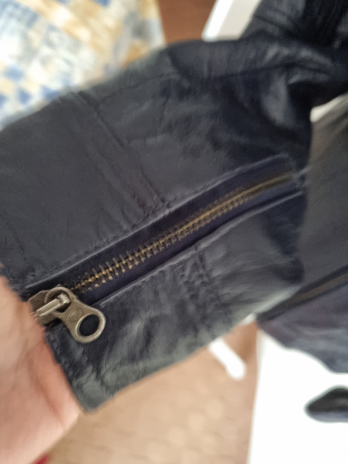Pise S. Sedi na 38..parkrat oblecena..tmavomodra navy farba. Dlzka 60..prsia 47x2 ..rukav od krku 78..sirka ramien 40..prava makka koza