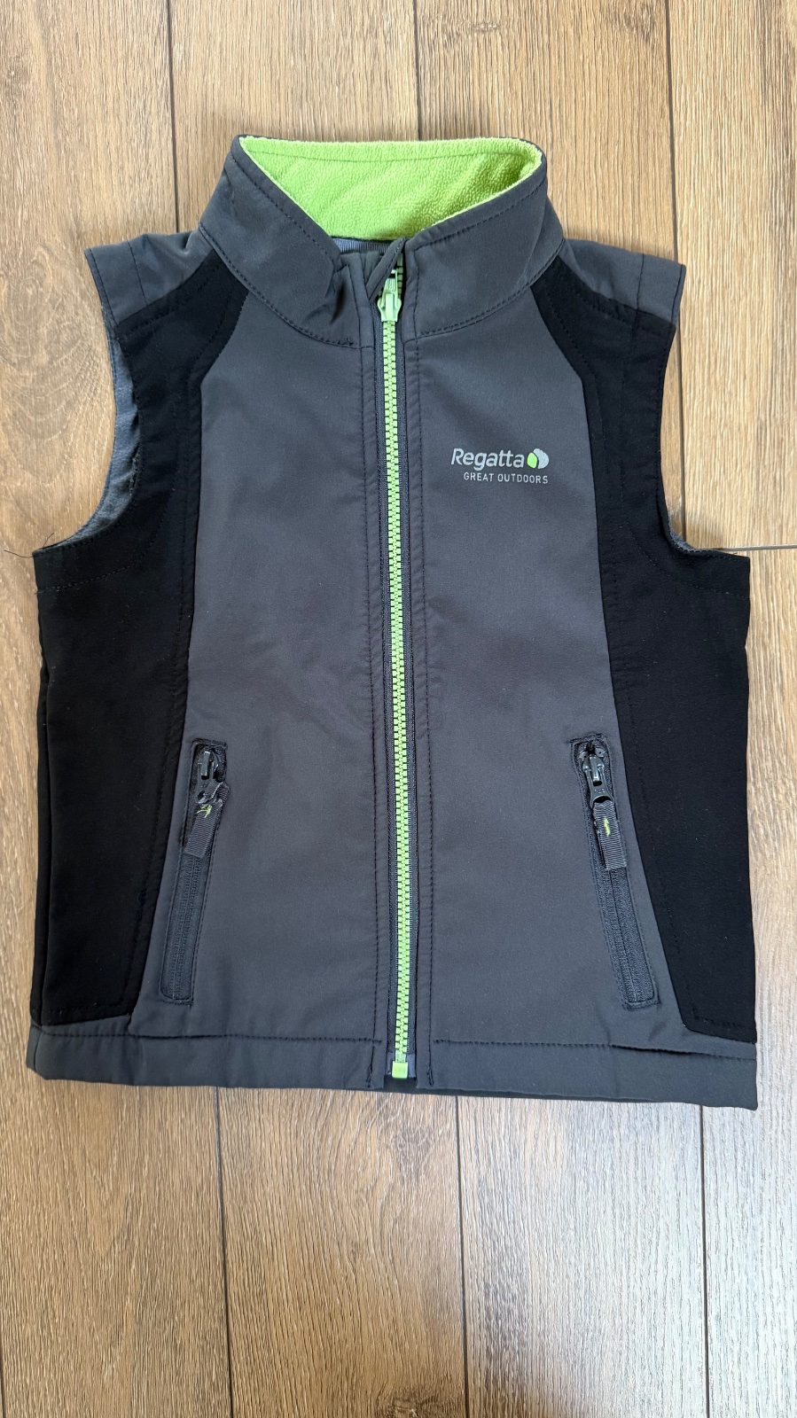 Veľmi dobrý stav! Prechodná vesta. Zapínanie na zips a na suchý zips. Vo vnútri jemný flís. Bez kapucní. Veľkosť:116. H&S ROZMERY:dĺžka:50cm,pod pazuchami meraná šírka (meraná len vzadu):45cm,od p...