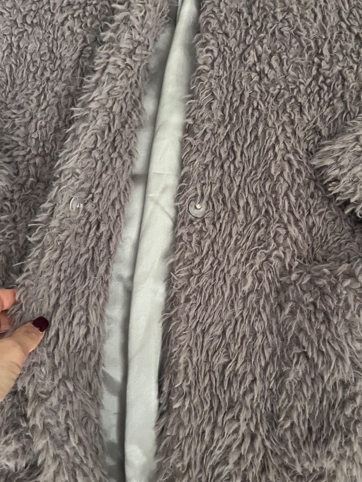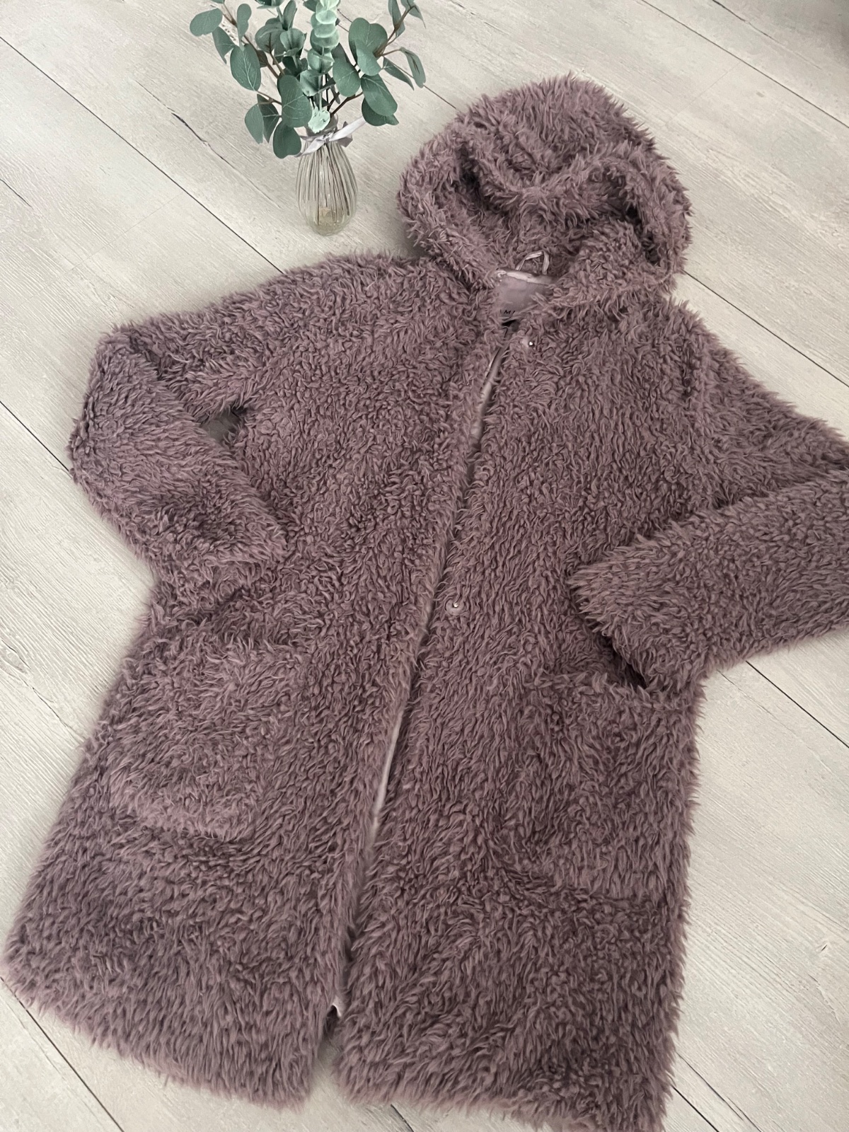 Nádherná lilava farba, nepoškodený,neznoseny, nemá žmolky. Použitý pár krát. Kvalitný -ziaden Aliexpress -vyrobene na Slovensku. Z vnútra sú prisite náhradné gombíky. Futrovaný je celý, aj rukávy, ...