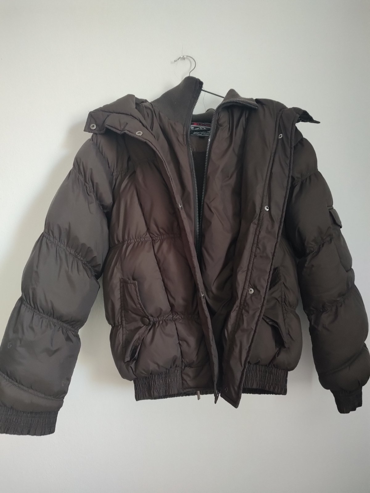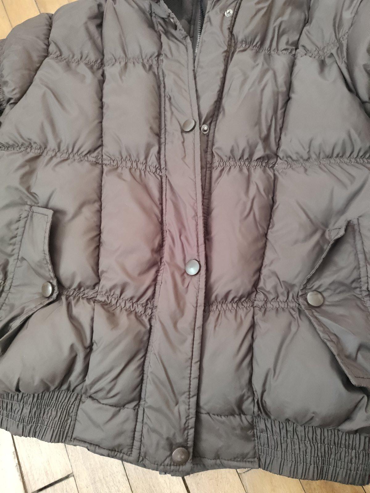 Hnedy cokoladovy odtien Mozne nosit ako oversize Dobry pouzivany stav Bezne znamky pouzivania