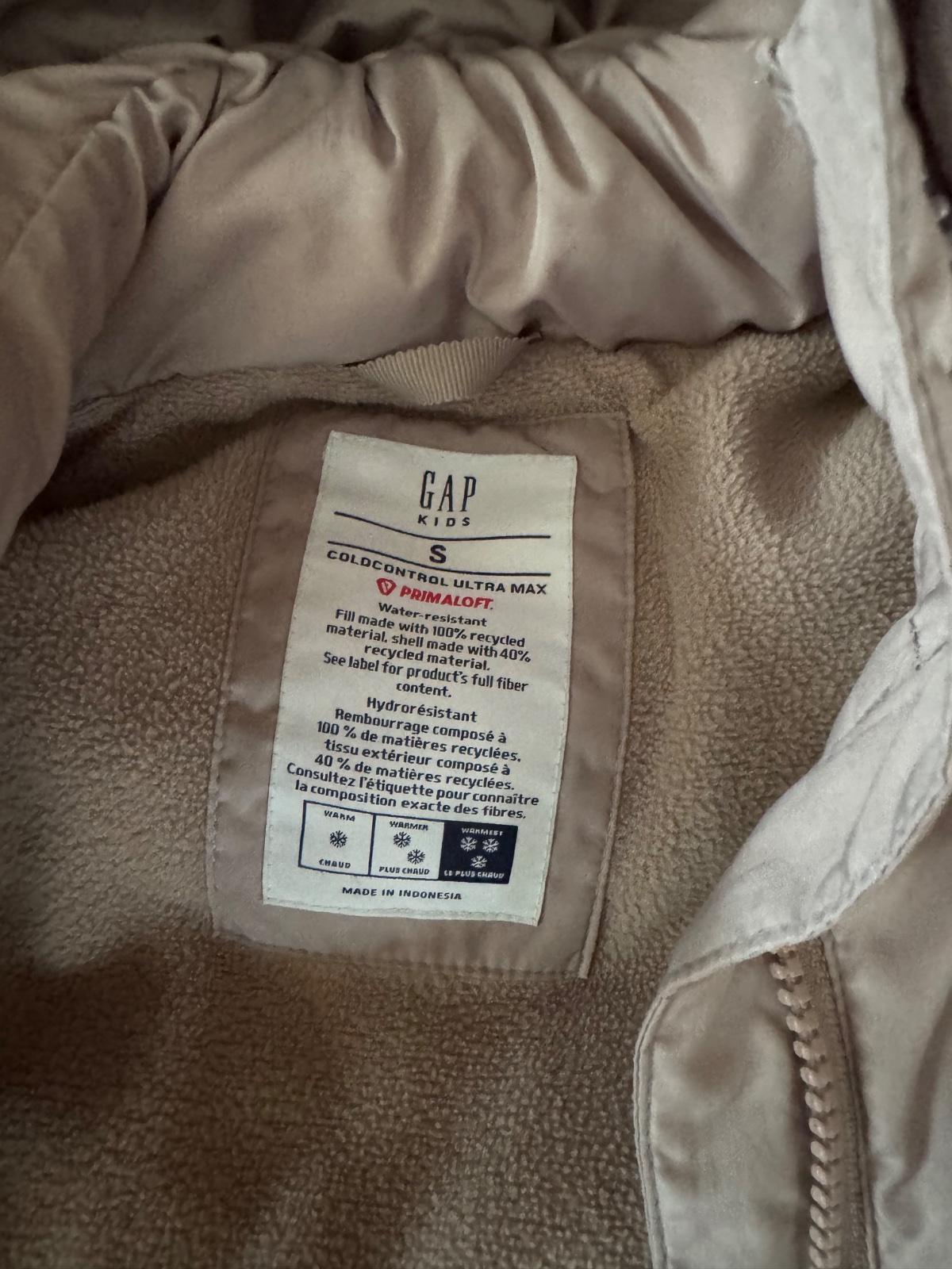 Nenosená vetrovka značky Gap, teplá. Raz praná. Písaná veľkosť na 5 rokov, reálne zodpovedá veľkosti 116. S patentom na rukávoch, cvokmi sa dá regulovať ich šírka. Zips atypicky mierne na boku. Nep...