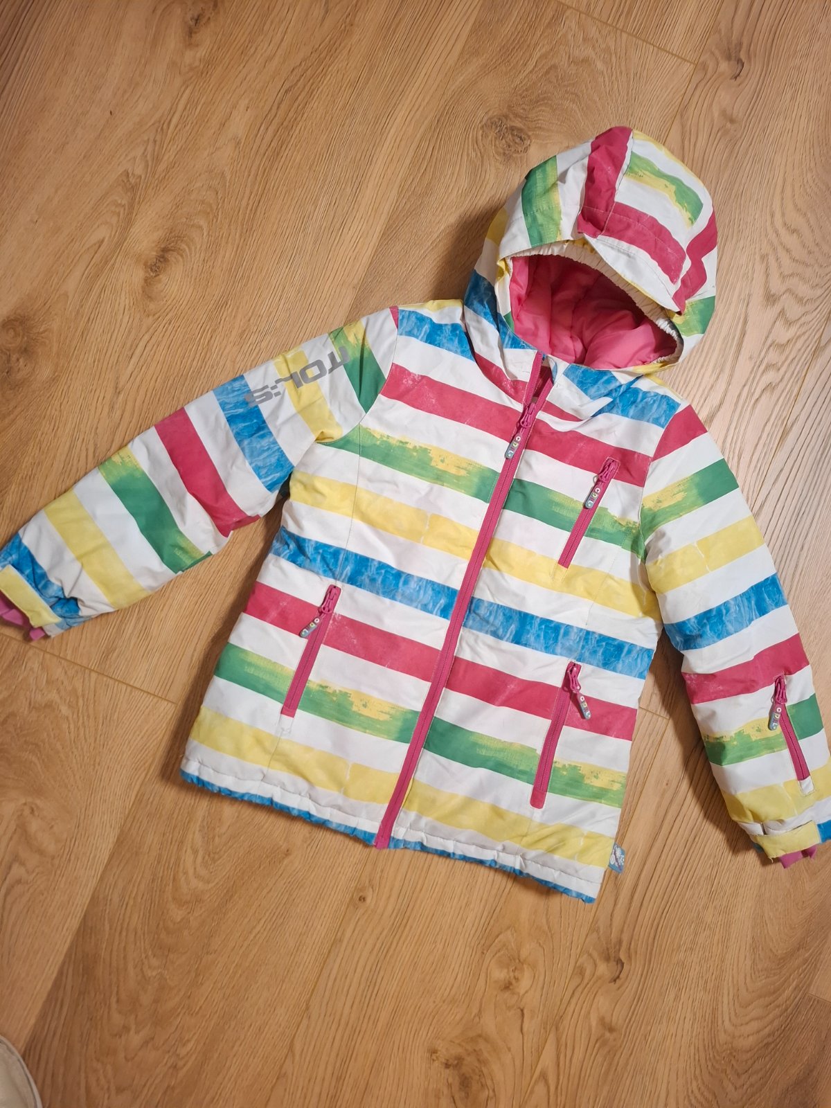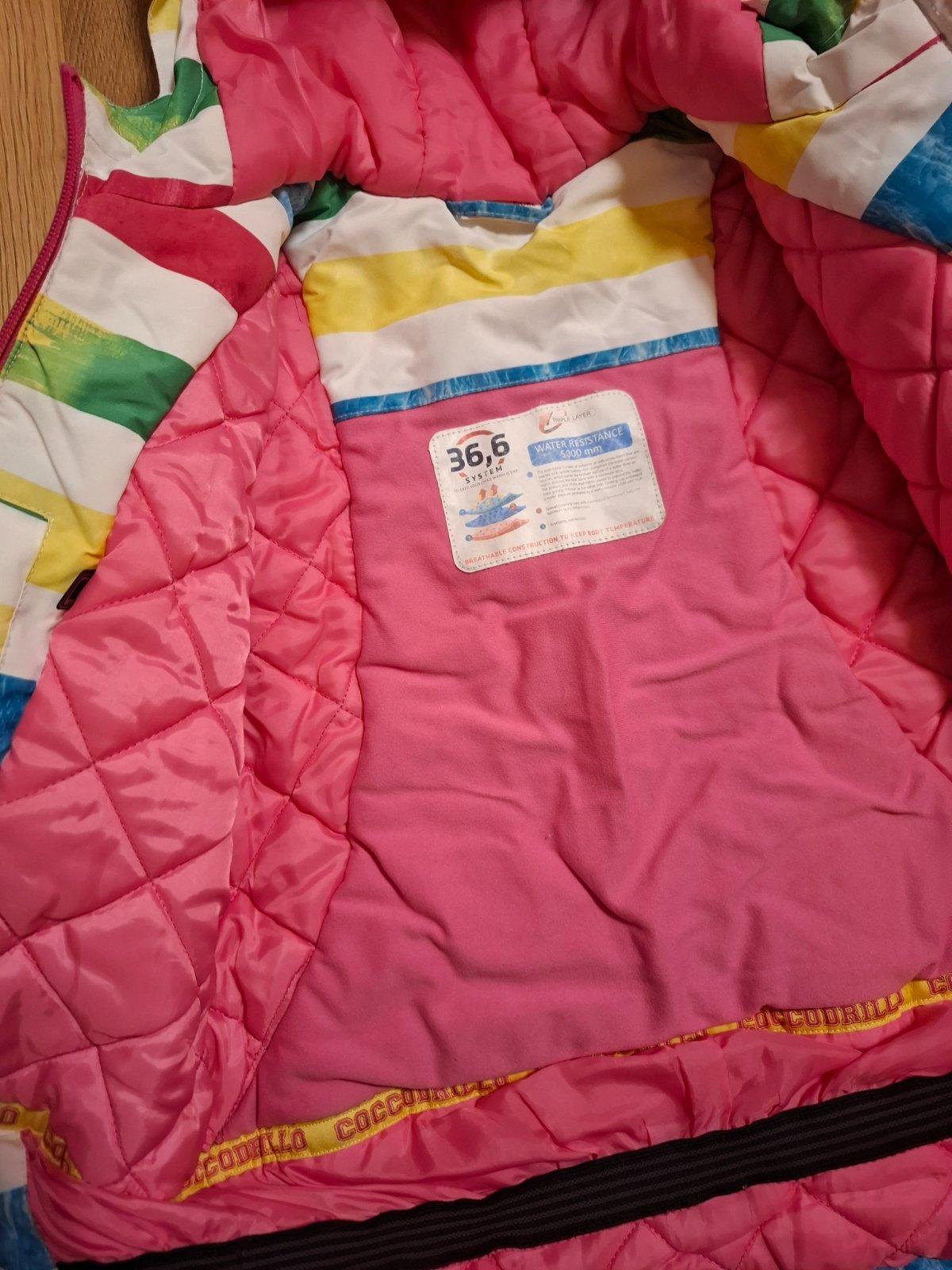 Skvelá teplá bundička, snežný pás, veľa vreciek vrátane vrecká na rukáve na ski kartu, kapucňa napevno.