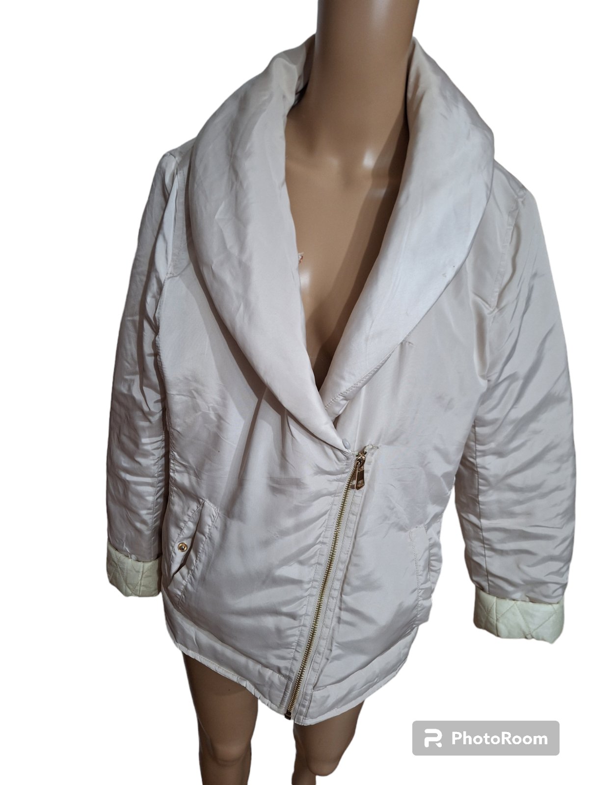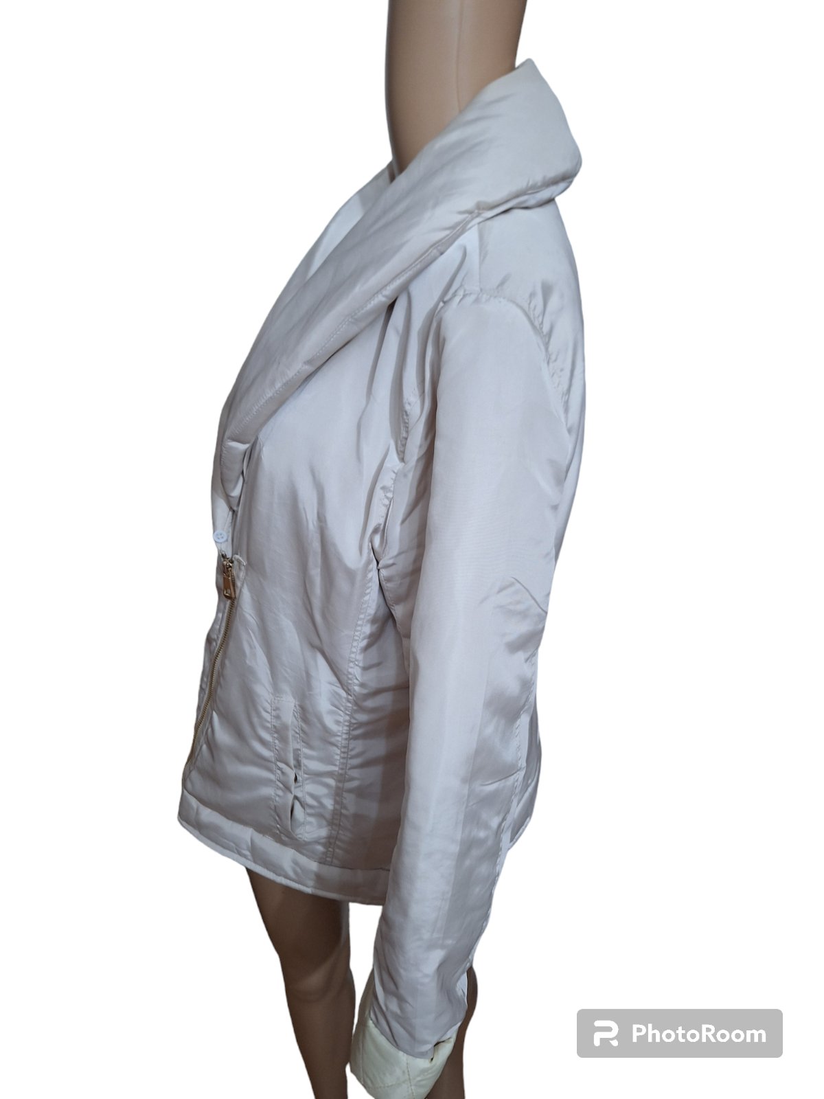 Dámska bundička na miernu zimu, Zapínanie je vpredu na zips. Dĺžka je 60cm,obvod hrudníka je 100cm a obvod pása je 98cm. Dĺžka rukáva od krku je 75cm