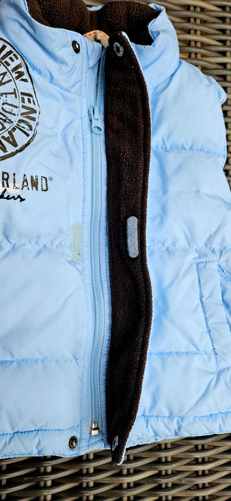 Detska zimna vesta v. 86 s vyberatelnou tenuckou kapuckou (schovana v golieri) vo vybornom stave, bez flakov, vad, bez poskodeni, material a rozmery na foto. Cena 10,90 Eur +posta