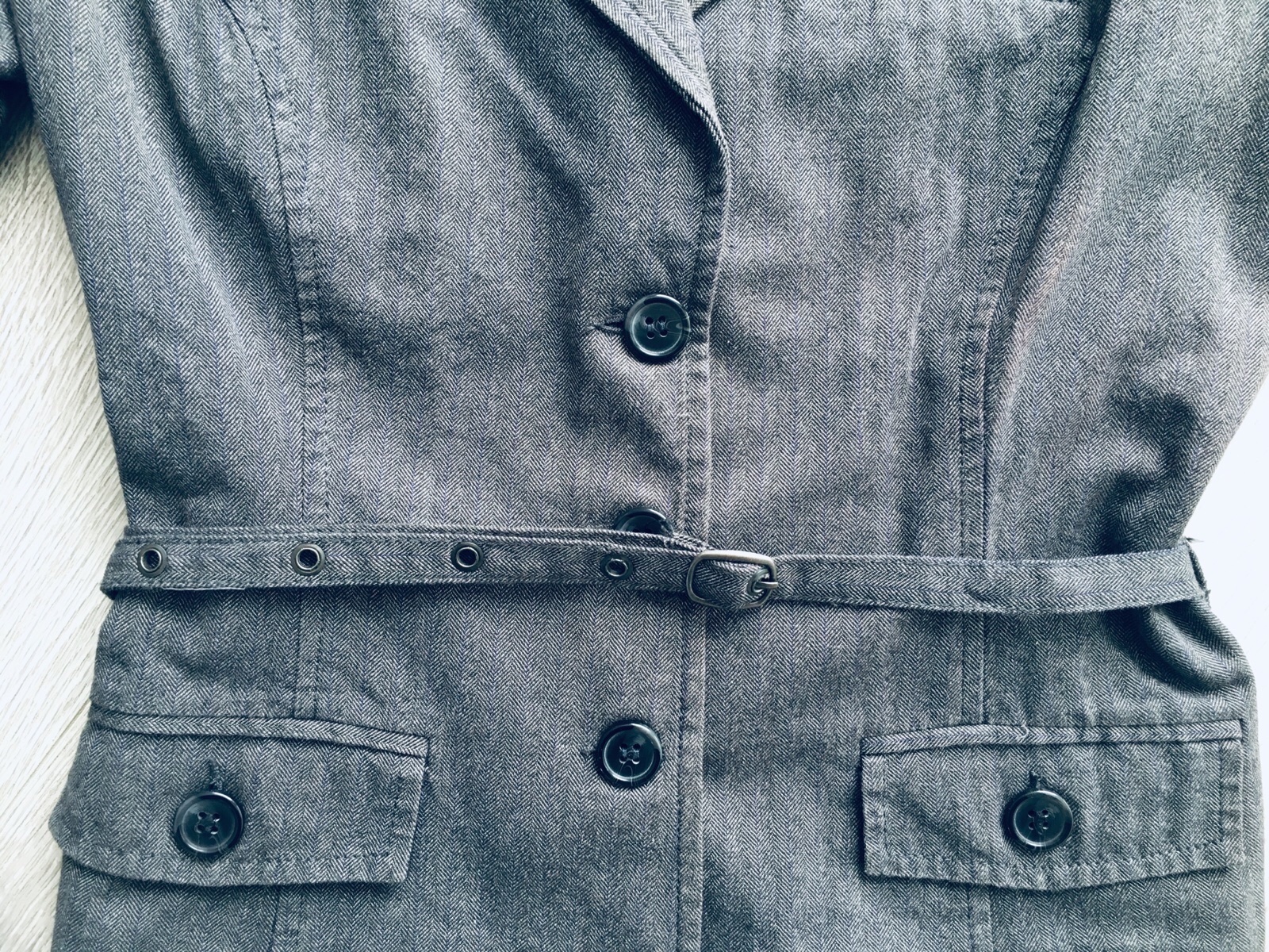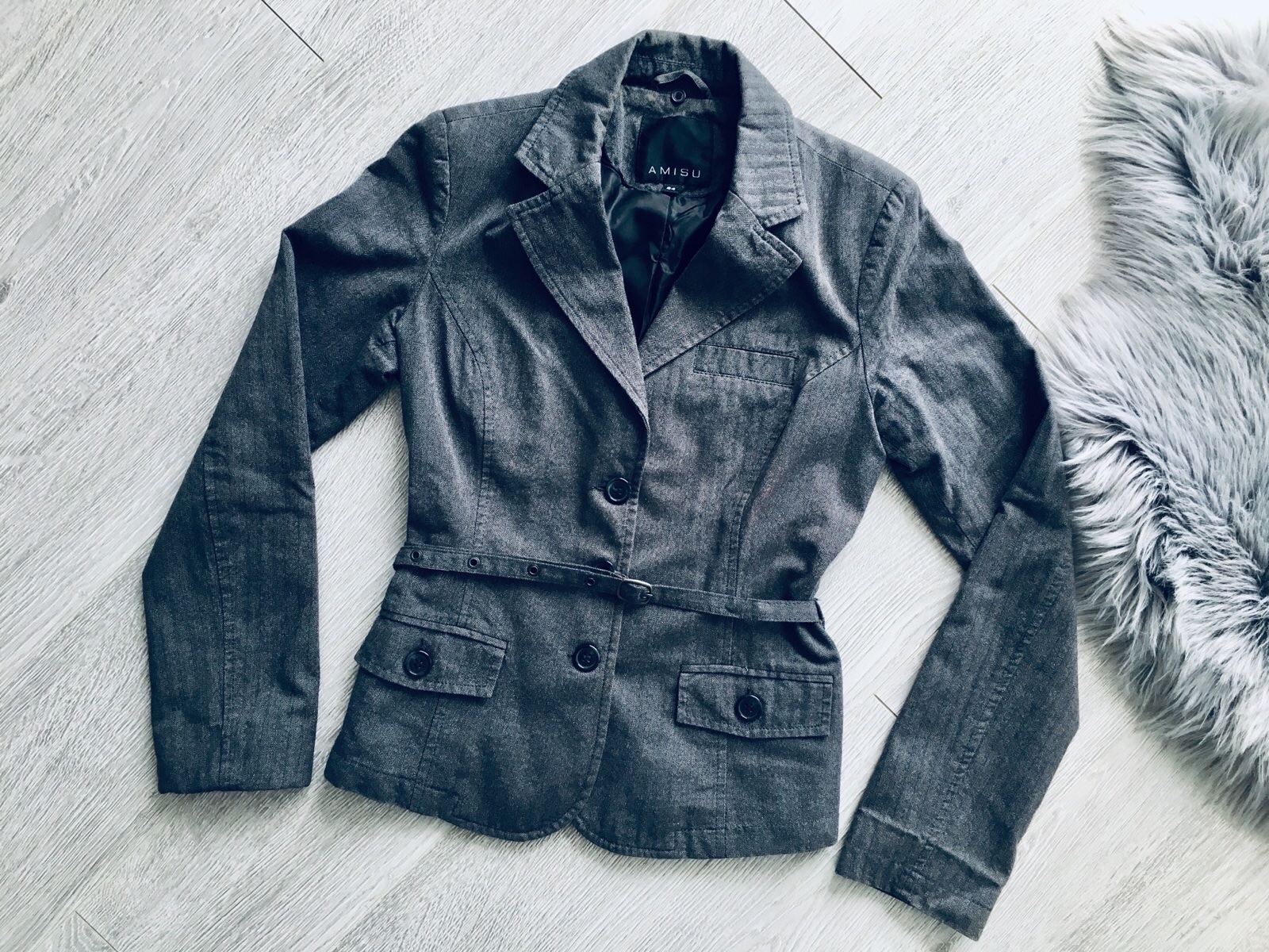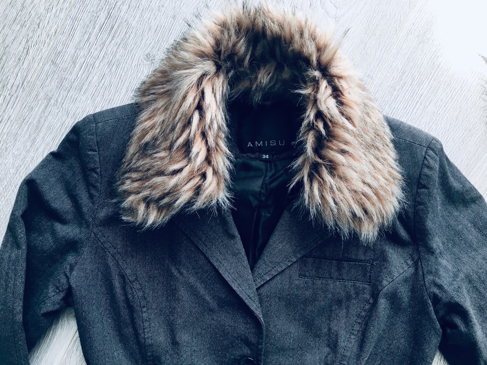 Sako Amisu s odnímateľnou kožušinou a opaskom na regulovanie pásu. Zapínanie na 3 gombíky. Spredu dve vrecká, nosené, no vo veľmi dobrom stave, veľkosť XS.