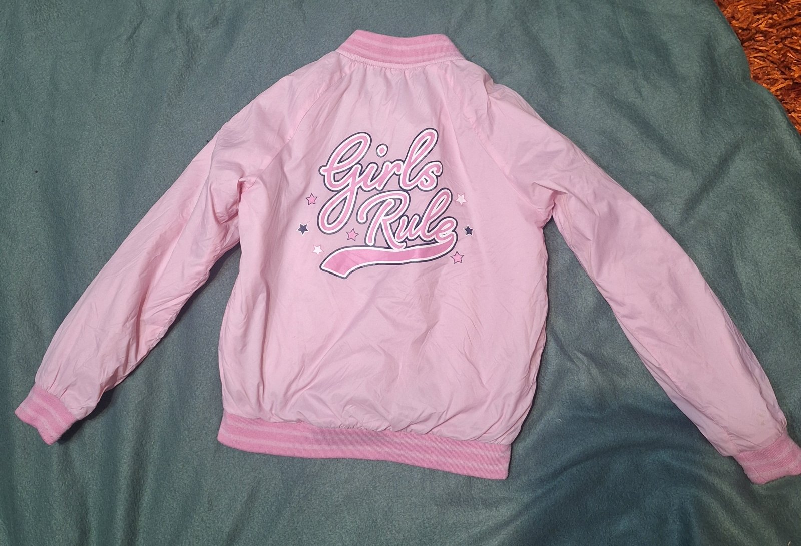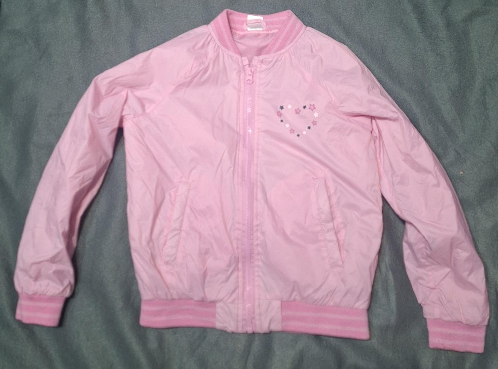 Dievčenská značková bundička na prechodné obdobie. Zapínanie je vpredu na zips. Je mierne zateplená. Dĺžka je 45cm, obvod hrudníka je 80cm a obvod pása je 76cm. Dĺžka rukáva je od krku 55cm