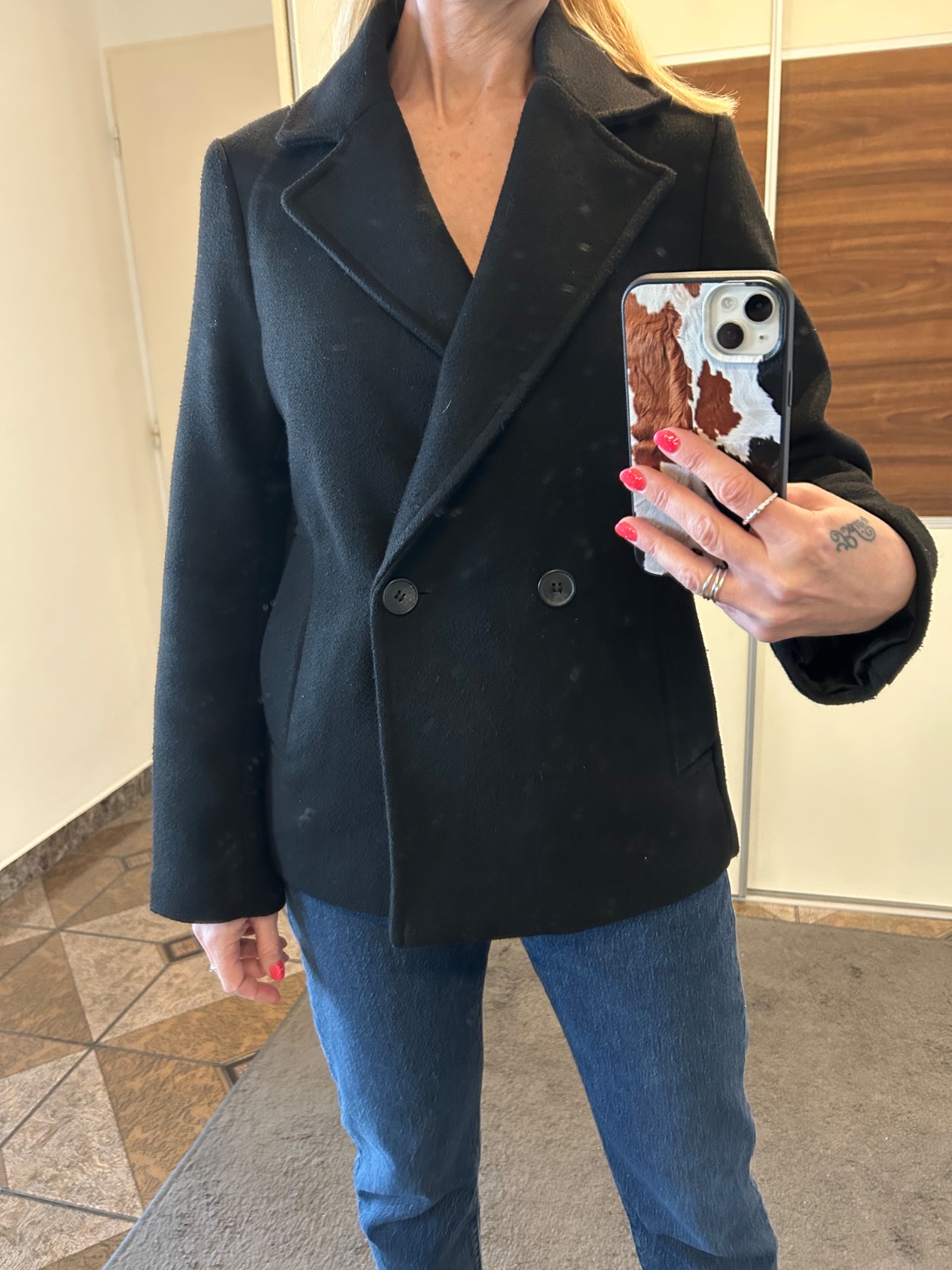 Bez poškodení kvalitný kabát pekná čierna farba .
