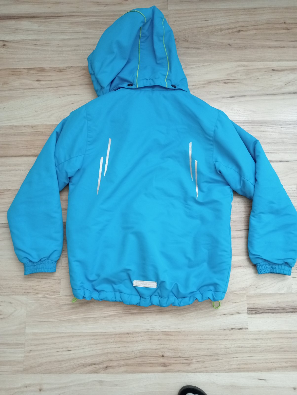 Pekný zachovalý stav bez poškodení Veľ. 134/140 Ski pass vrecko, odnímateľná kapucňa, reflexné prvky, zatavené švy na vreckách Šírka 45 cm Rukáv dĺžka od ramena 51 cm Dĺžka 54 cm Cena bez pošty