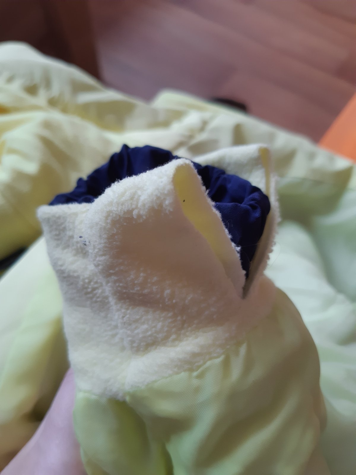 Malo nosena. Vnutorny rukav je nastrihnuty, lebo sa zle obliekal.