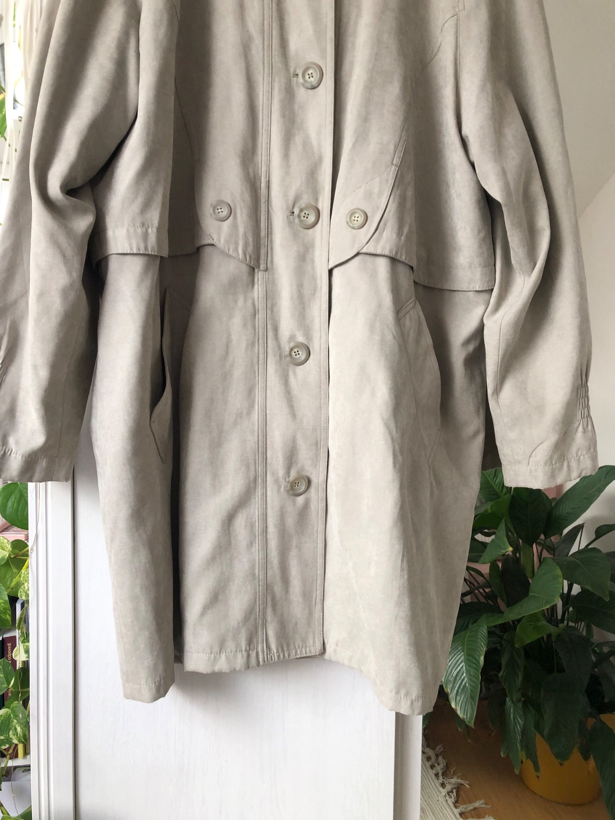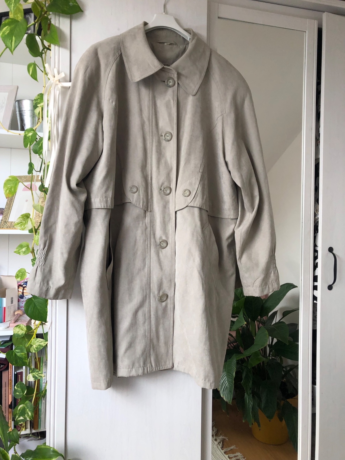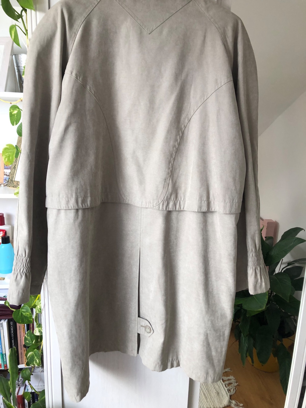 Pekny prechodny kabat , vrchny material ako plast do dazda. Noseny v dobrom stave Strih ako mierne paleto.