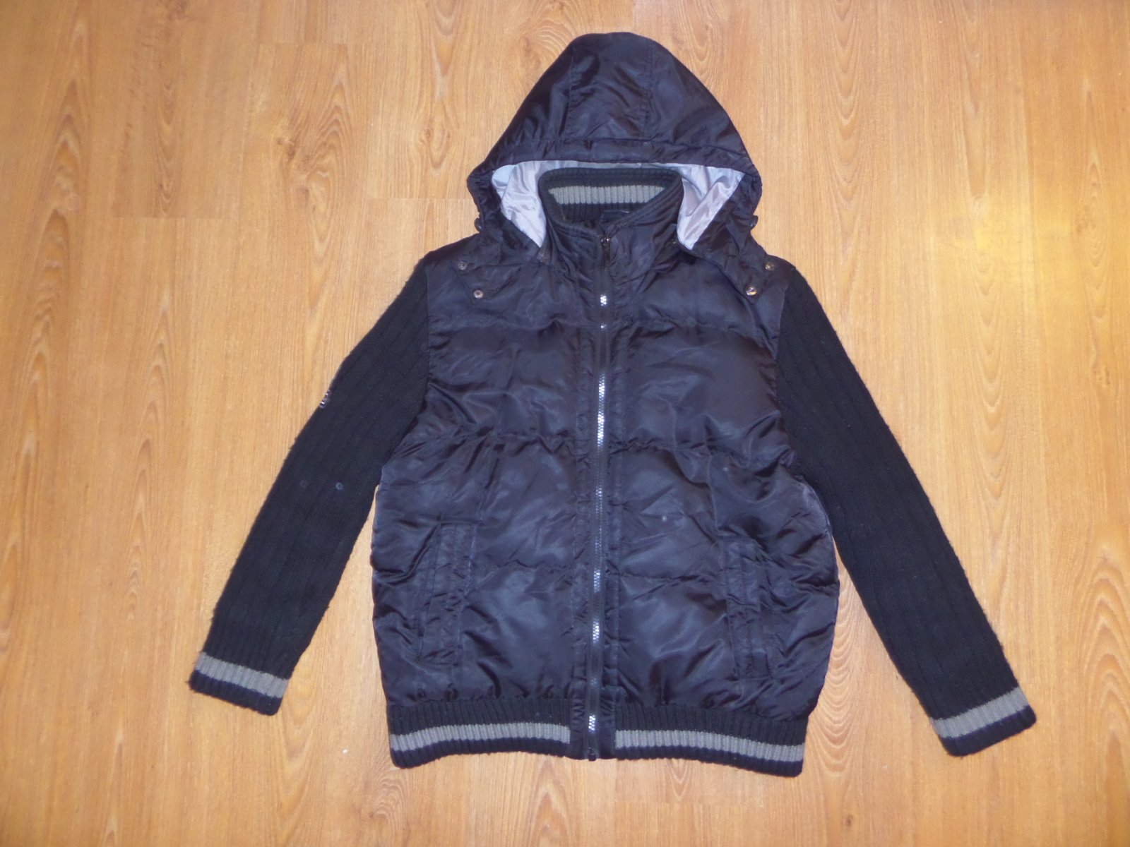 Bunda s pletenými rukávmi, celá zateplená, vo výbornom stave.