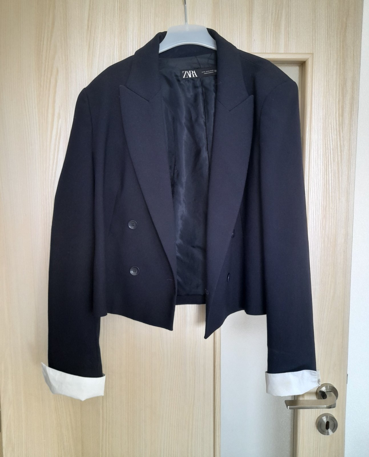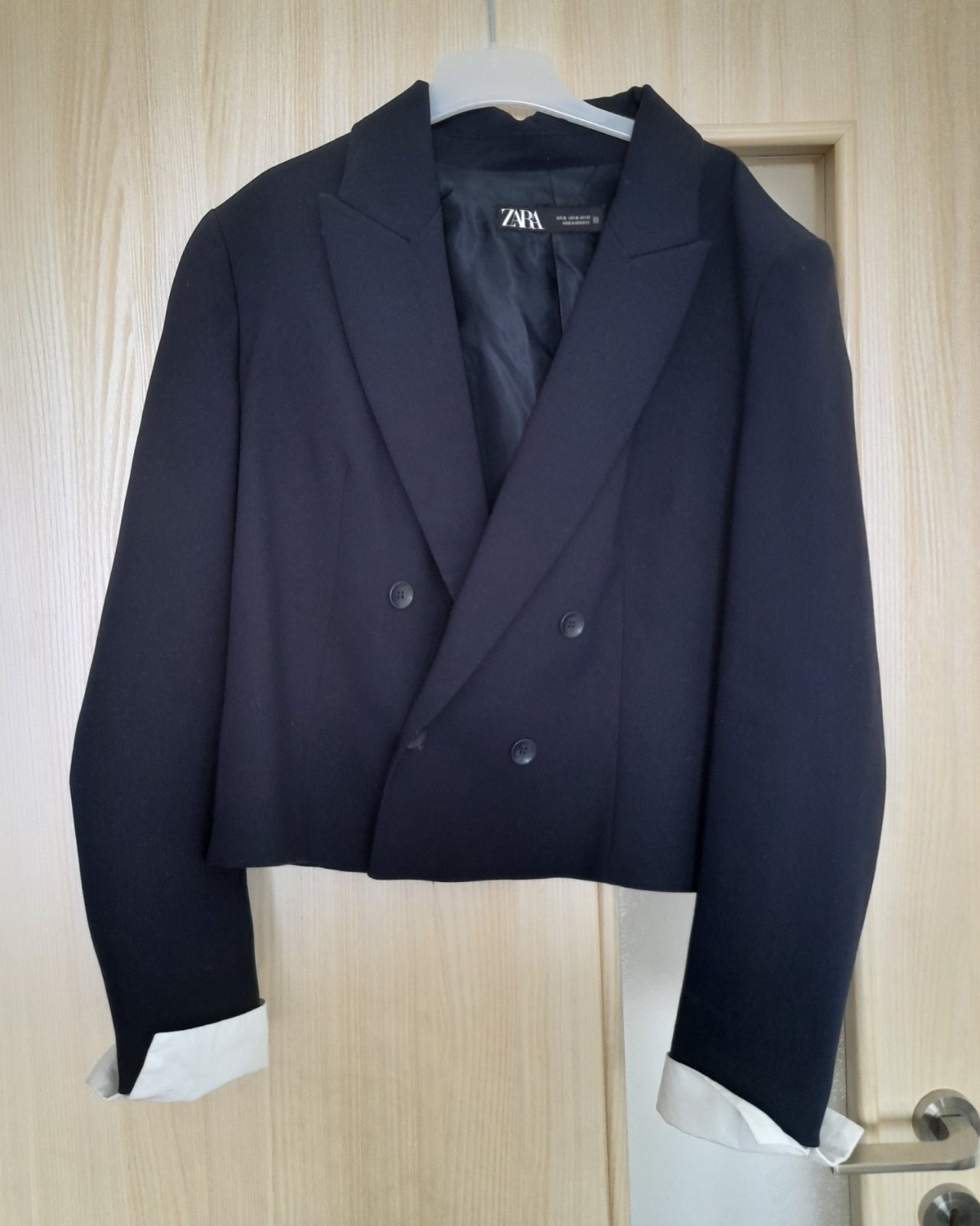 Predám dámske sako Zara vel. XL ale aj L , dĺžka 56 cml, šírka 52 cm, rukáv 59 cm , mäkká ľahšia príjemná látka + podšívka, 2 vrecká ešte zašité, tmavomodrá farba , top 100% stav + poštovné. Nie V...