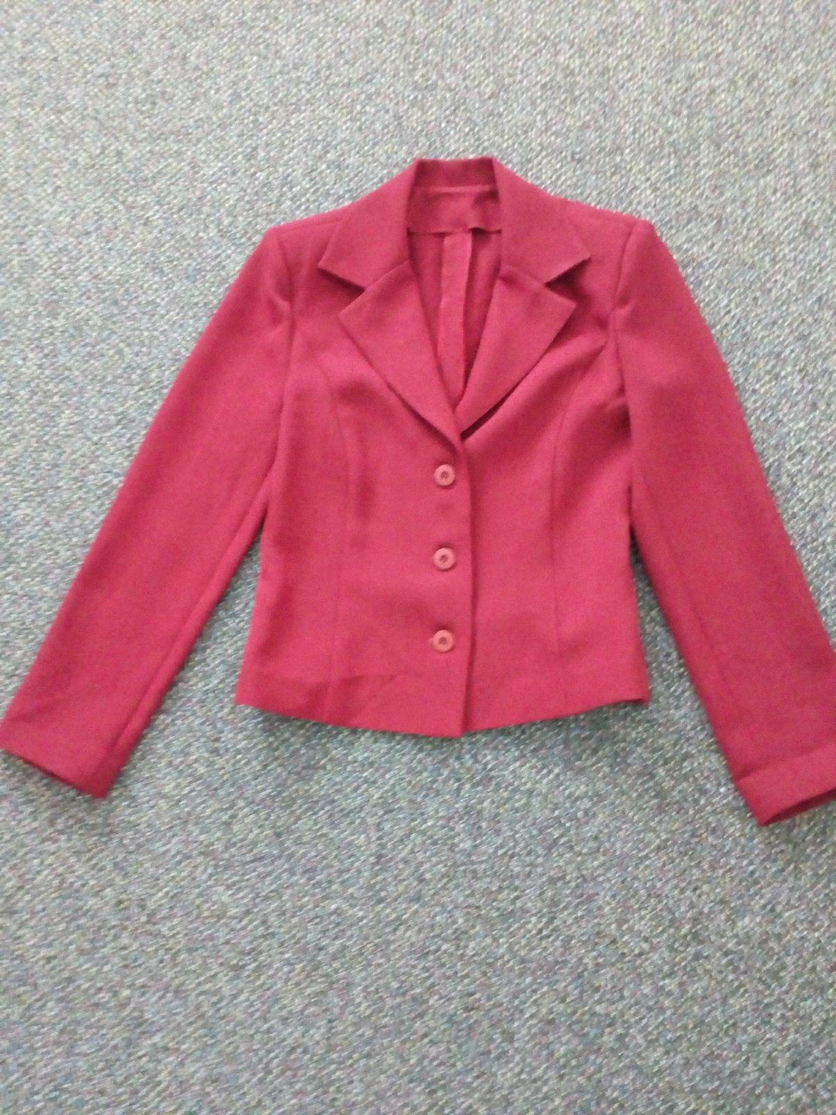 sako jemnej bordovej farby - foto trochu skresľuje, nie je to klasická červená, ale niečo medzi červenou a bordovou, je šité u krajčírky, tenké, nepodšité, len raz oblečené, bez poškodení. Keďže ho už nevužijem, predávam za zlomok ceny, dĺžka: 55cm, rukáv 61 cm, cez prsia 2x45 cm - merané pod pazuchami.