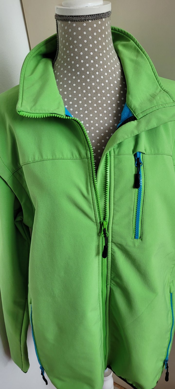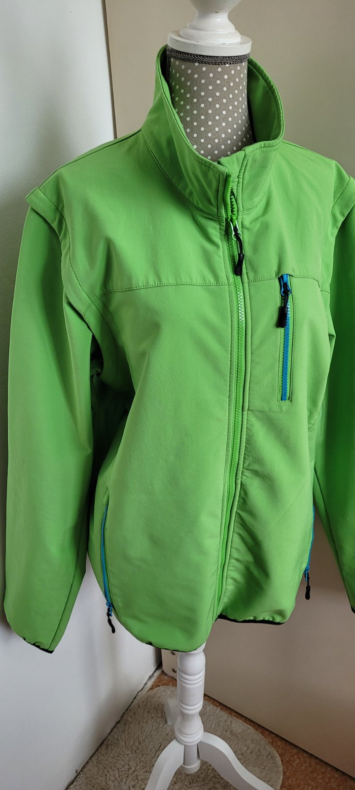 Zelenej farby, moderná, elegantná pritom športová, na prechodné obdobie. Rukavy sú odopínateľné, potom je ako vesta.