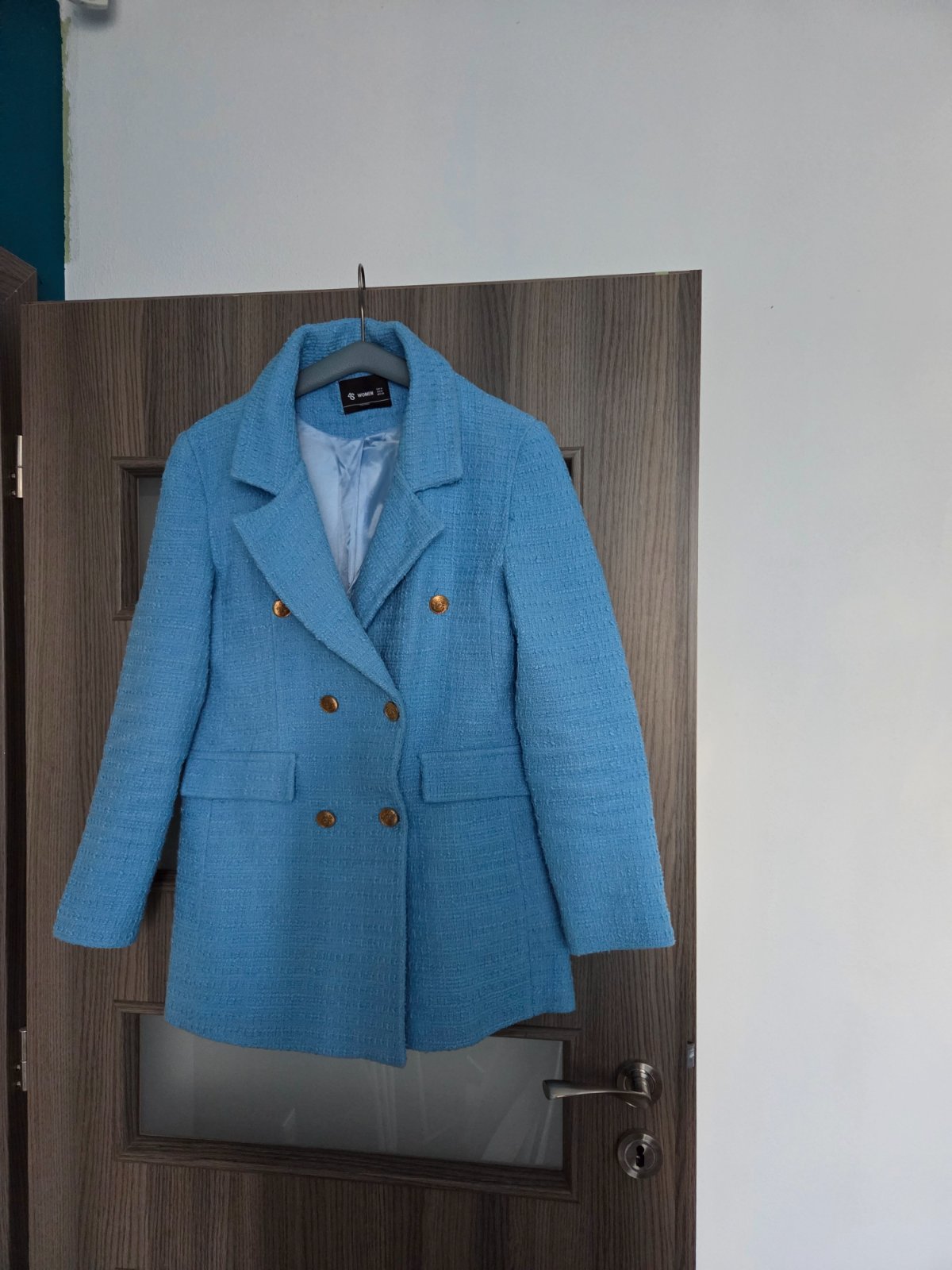 Naživo je krásny, farba je bledomodrá, je ako nový, bol raz oblečeny, veľkosť M. Kupovaný v butiku.