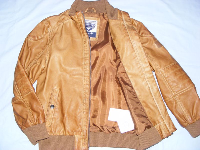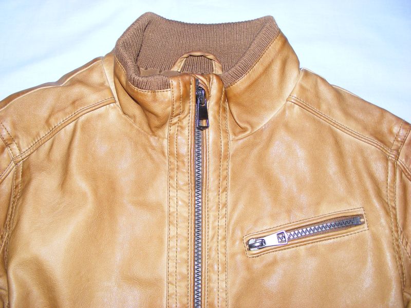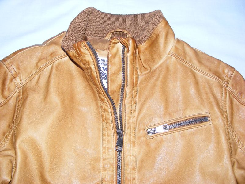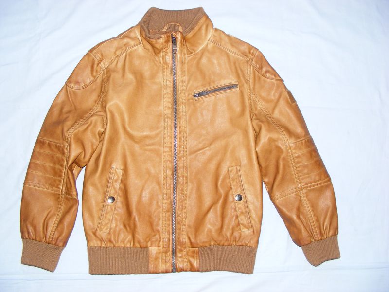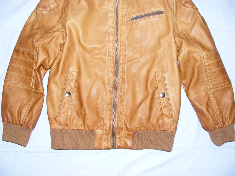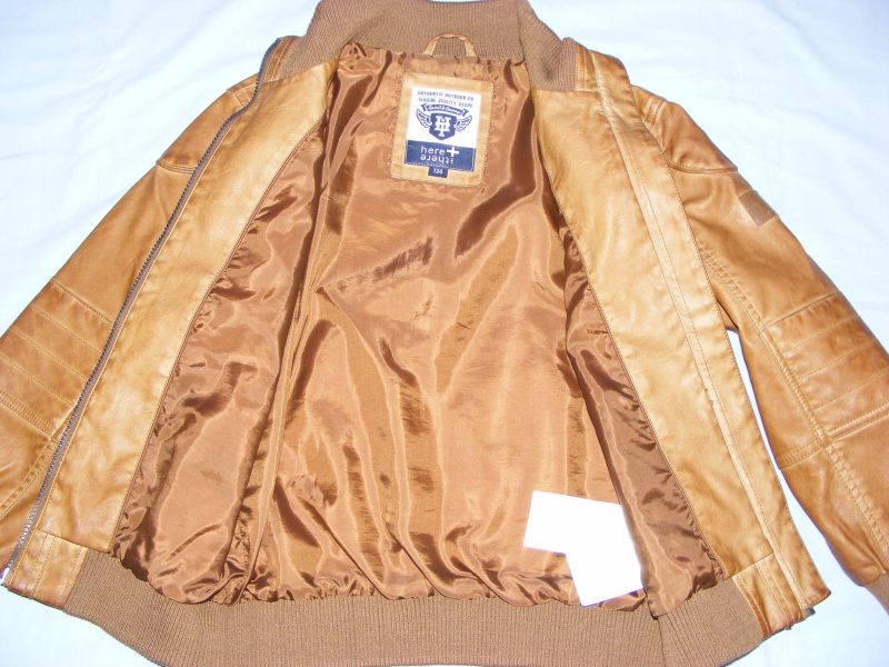 Koženková bunda Here&There by C&A, podšitá, zapínanie na zips, bočné funkčné vrecká s uzatváraním na patent. Chlapčenská, ale myslím, že je to taký univerzálny kúsok, ktorý oblečú aj dievčatá. Vonkajší materiál 100% polyuretán, podšívka 86% viskóza, 14% polyester.