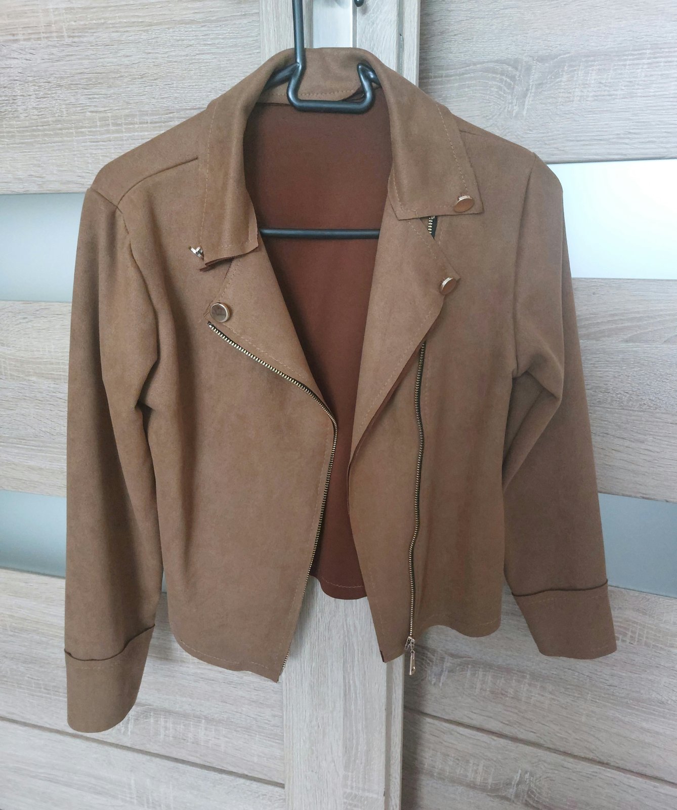 Nenosená, píše XS, ale je oversize - sedí na menšie M, čiže skorej S/M, farba taká staroružová až cappuccino
