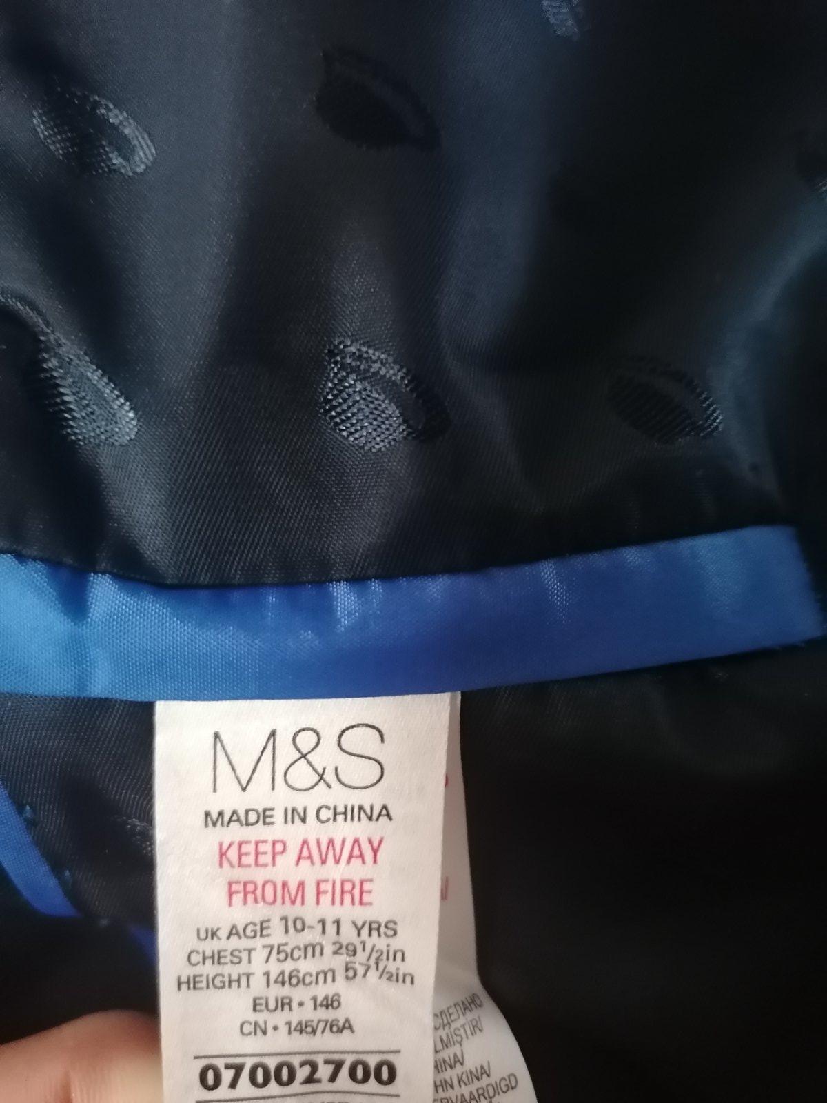 Sako oblečené 2x, bez poškodenia. Veľmi pekne vypracované aj zvnútra. Rozmery uvedené na fotke. Veľkosť 146.