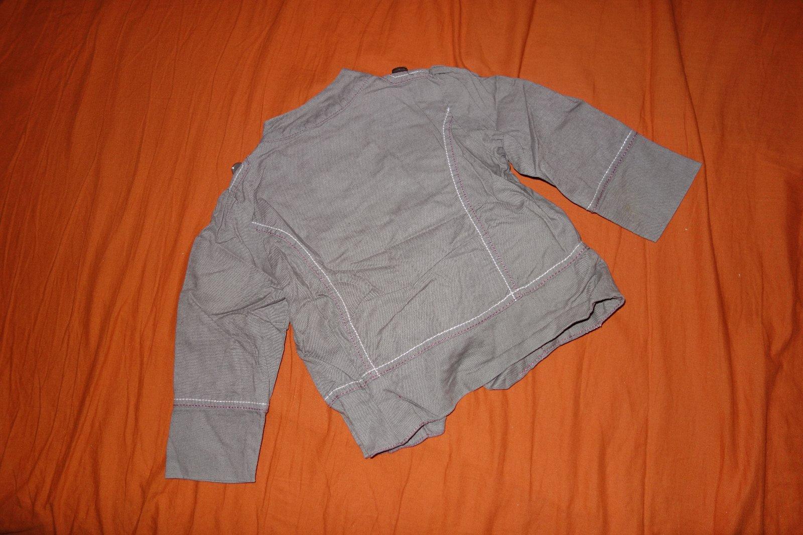 Krasne sacko vo velmi dobrom stave. Je tenke, iba podsite. Je tmavsie ako na fotke, nie je sede- skor take hnede do fialova.