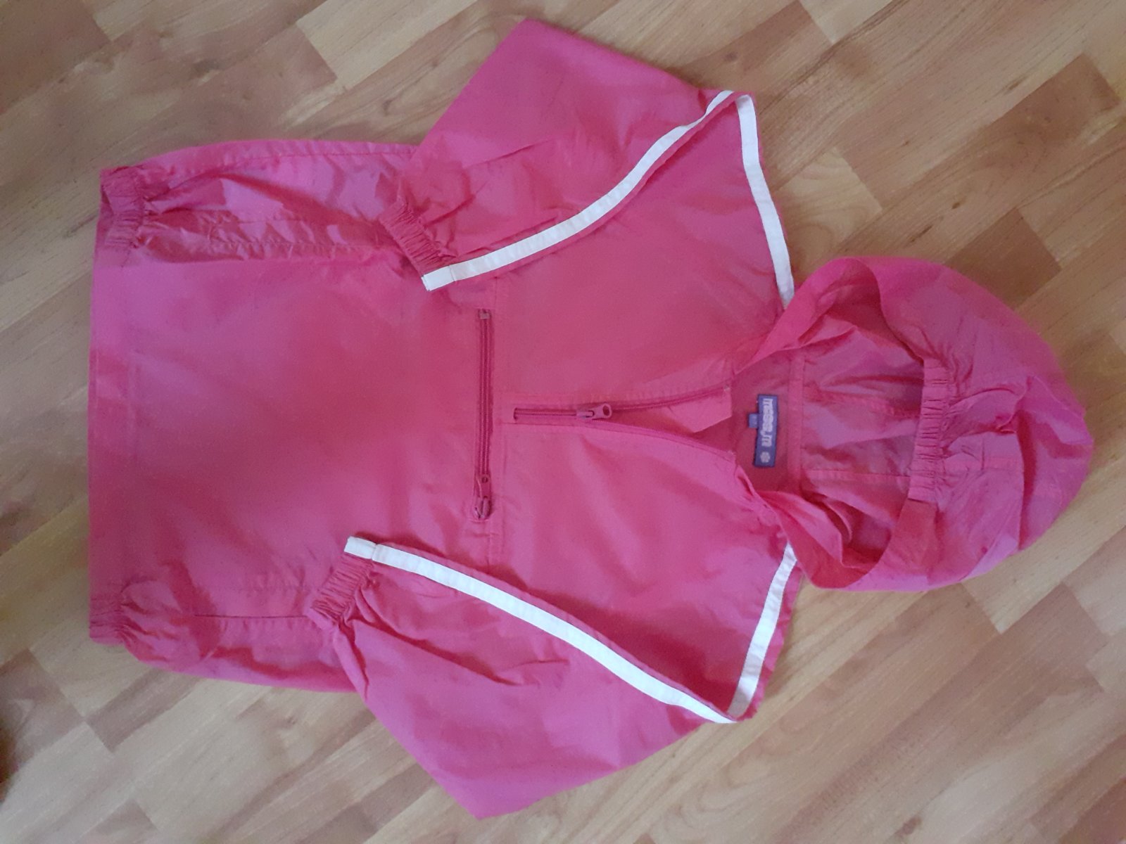 Vetrovka do dažďa, dá sa poskladať do tašky. Veľkosť uvedená na 6-7 rokov. Zachovalá.