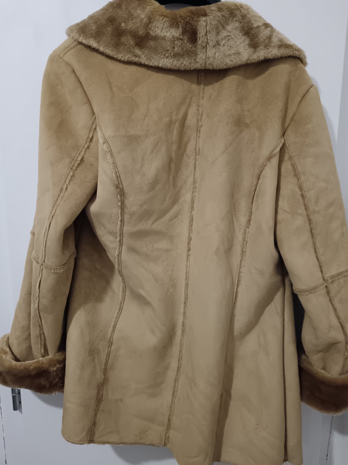 Výborný stav, noseny minimálne, hnedý, teplý, veľkosť 42,šírka pod pazuchami cca 55 cm, dĺžka 87 cm