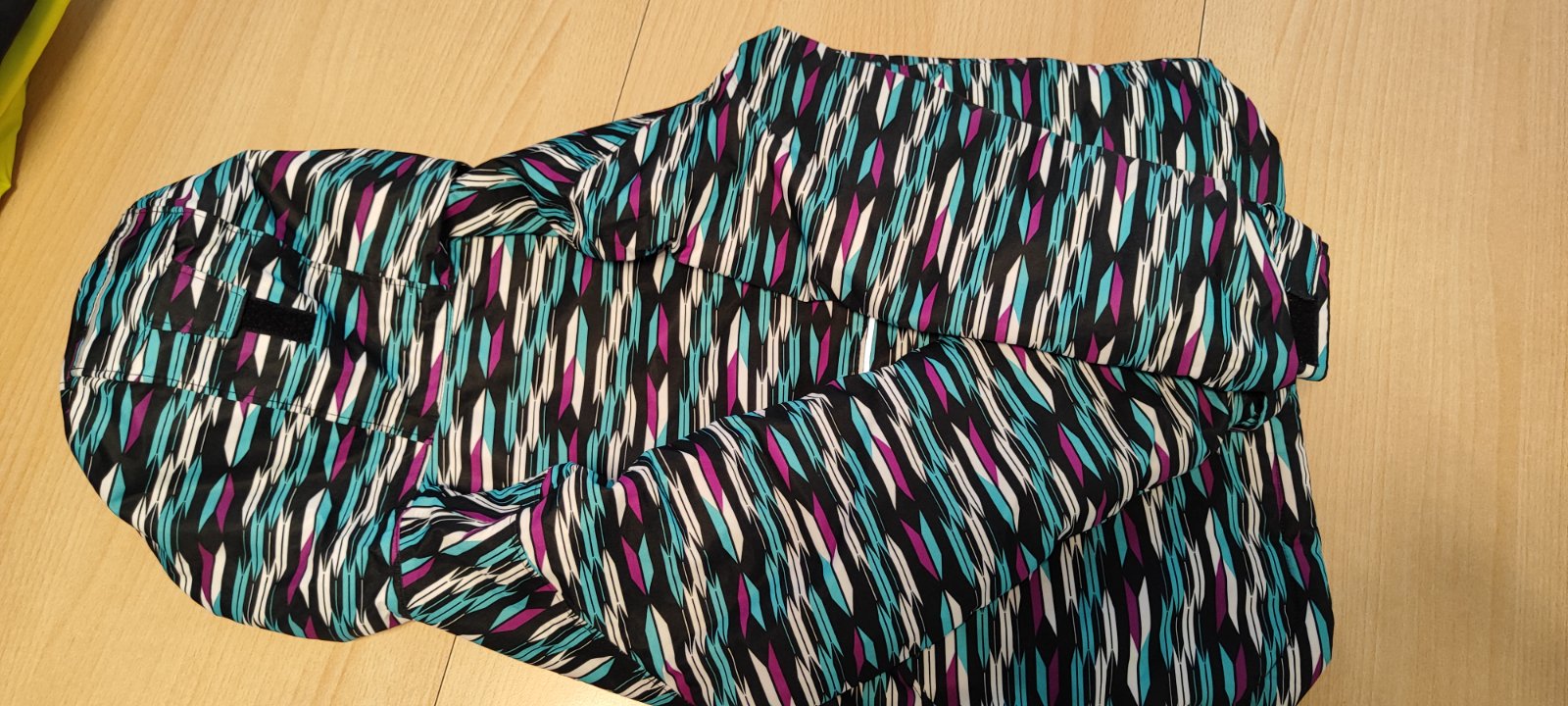 Oblečená jednu sezónu, teplá pohodlná bunda.