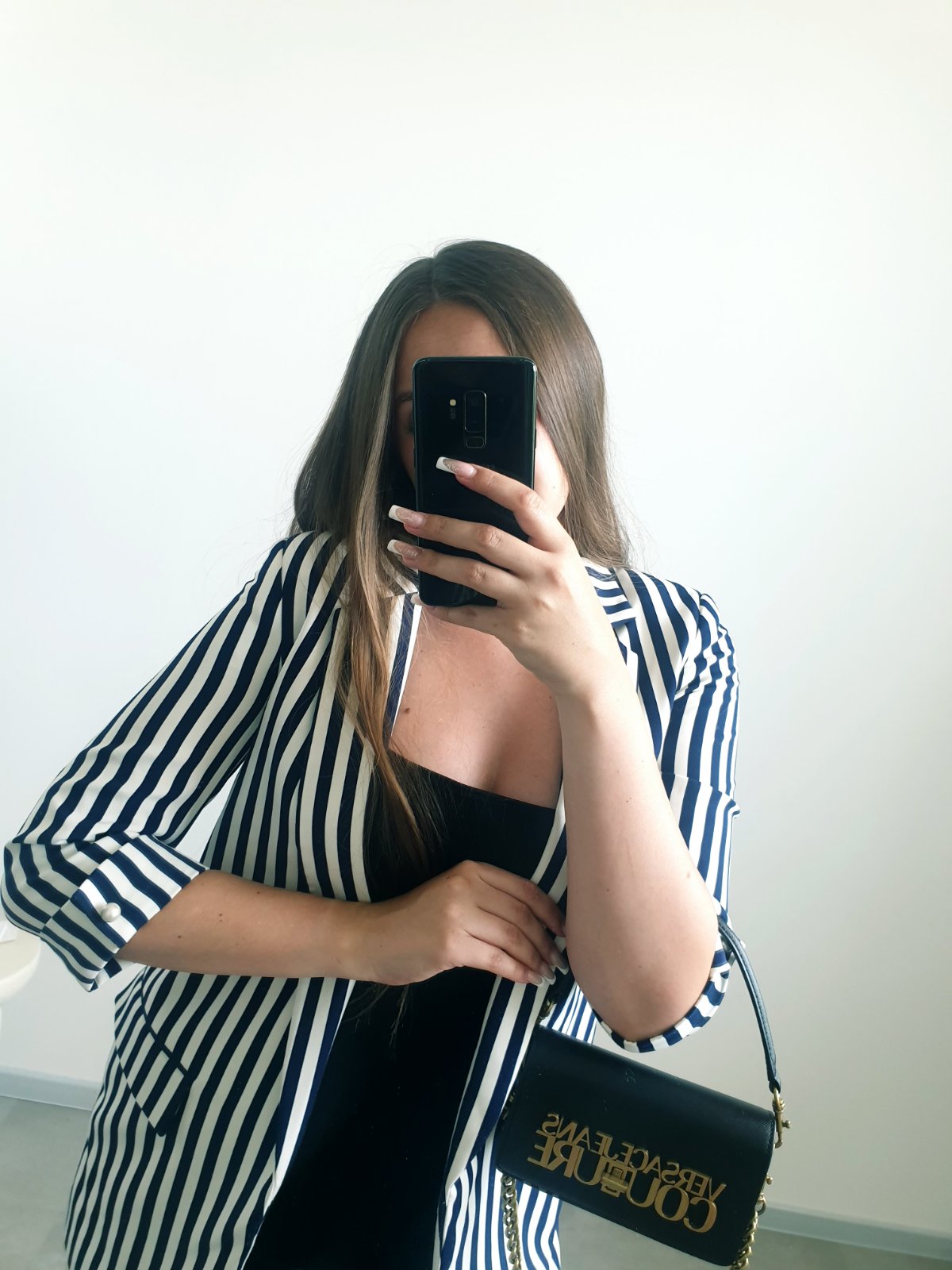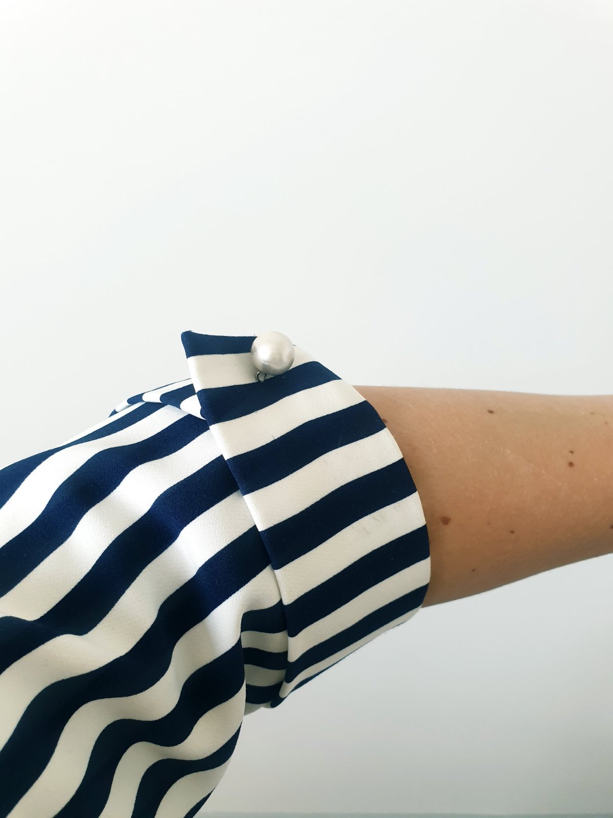 Pásiky sú tmavomodré, na rukávoch krásny detail perličiek.