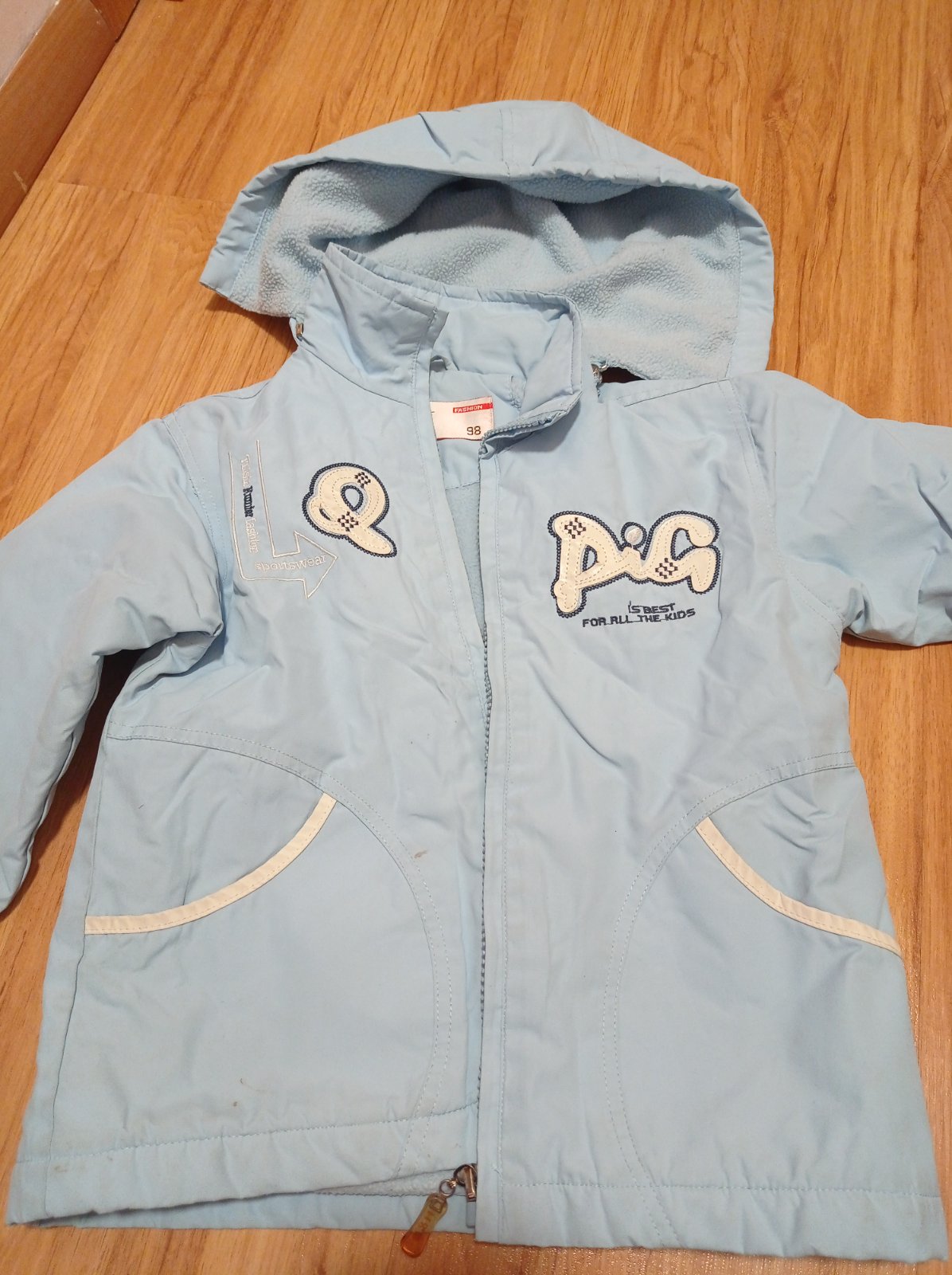 Bunda, dobry stav,ma fliacky vpredu male. Na dvor v pohode.dlzka:41, rukav od krku:44 cm. Kapucka sa da dat dole.