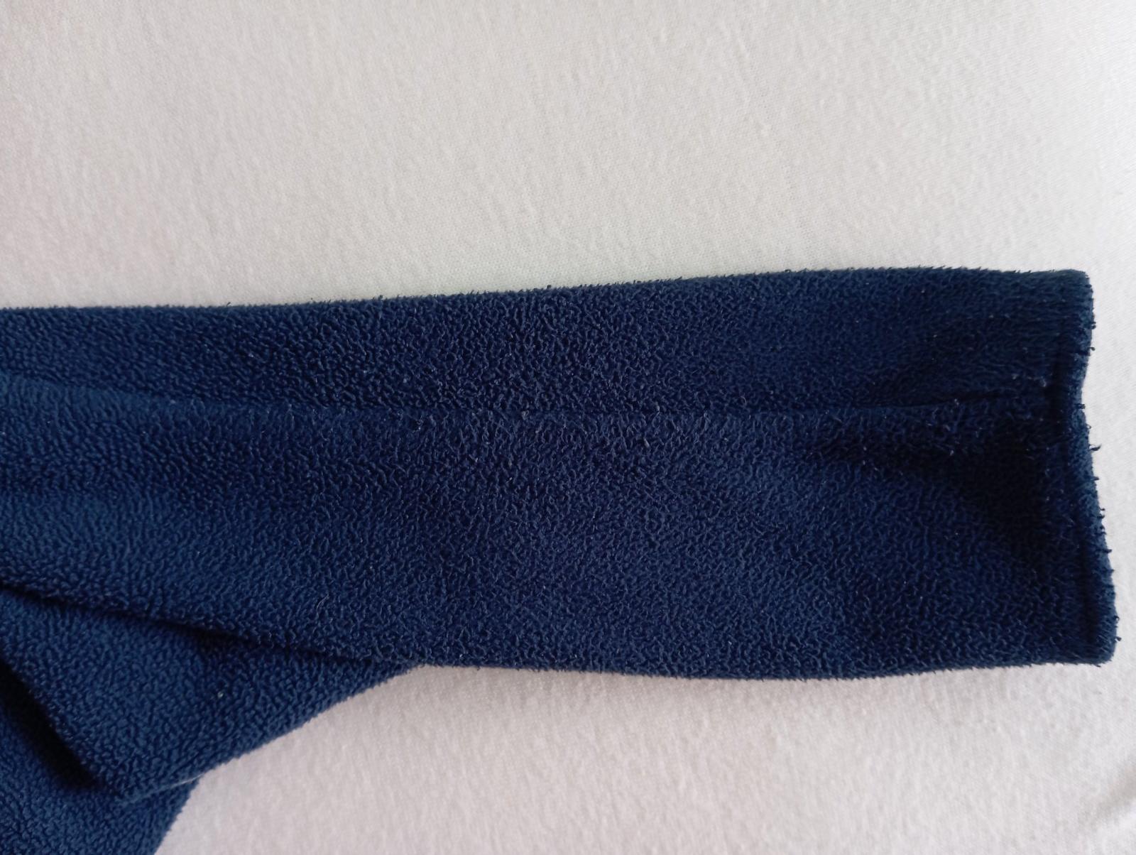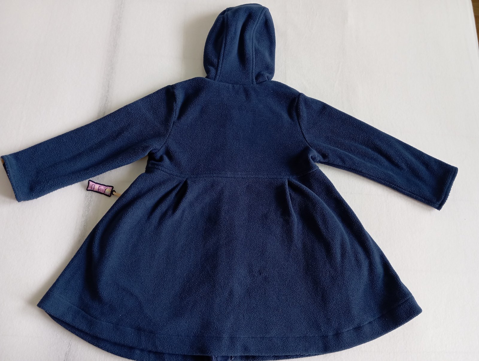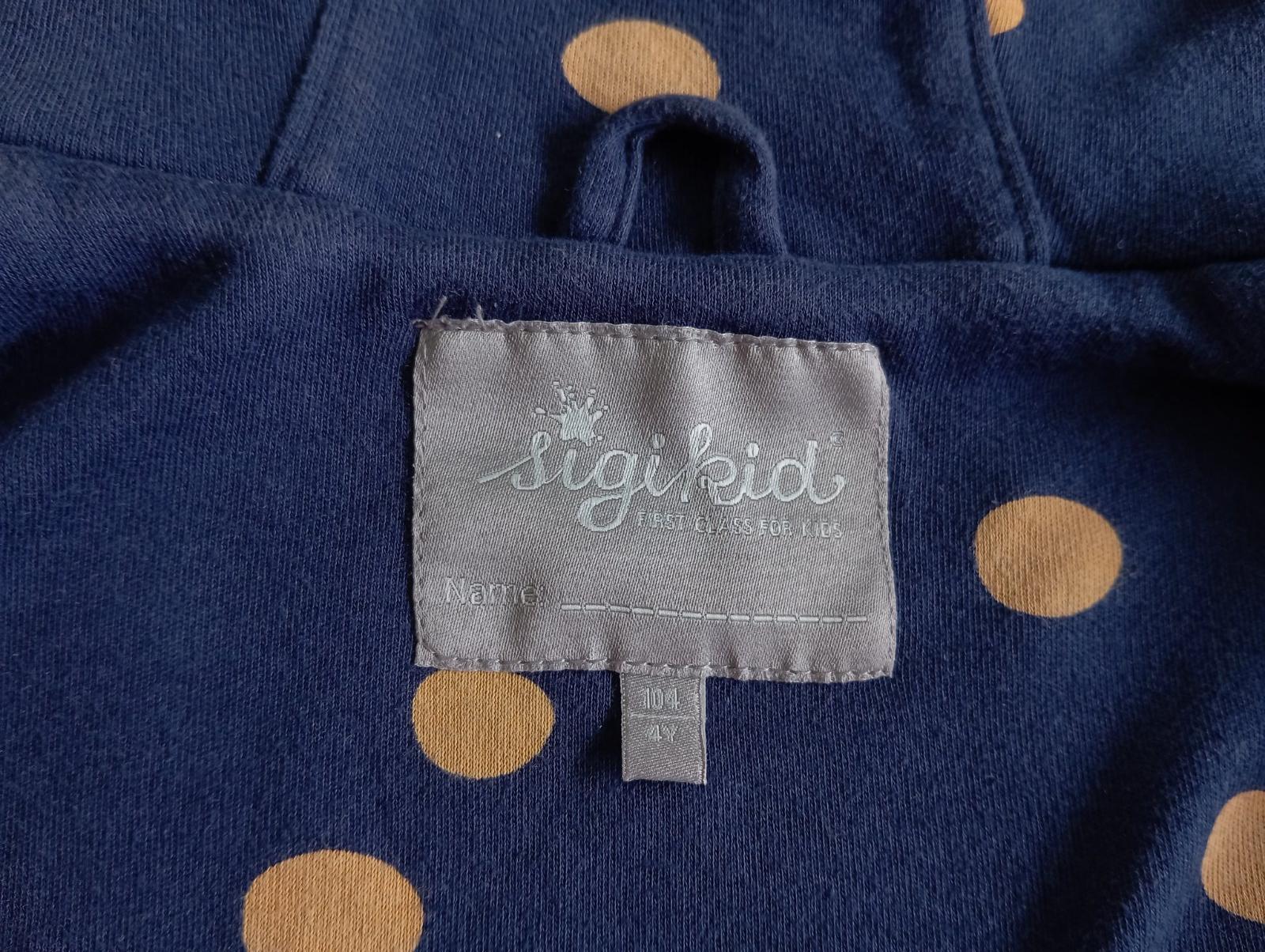 Zachovalý kabátik pre malu paradnicu. Veľmi elegantný. Vrchný materiál flis, vo vnútri podsity teplakovinou. Nosenie vidno na rukávoch - jemne zmolky (viď foto). Nosit sa dá dlho, až do veľkosti 110 - 116.