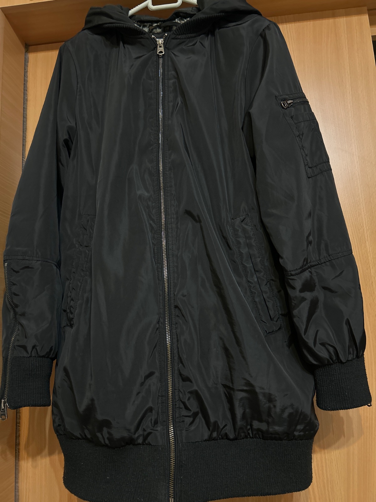 Dobrý nosený stav,na patentoch aa začali robiť žmolky,ale dajú sa odstrániť odžmolkovačom.Vďaka umelej kožušinke je teplučká🤗.