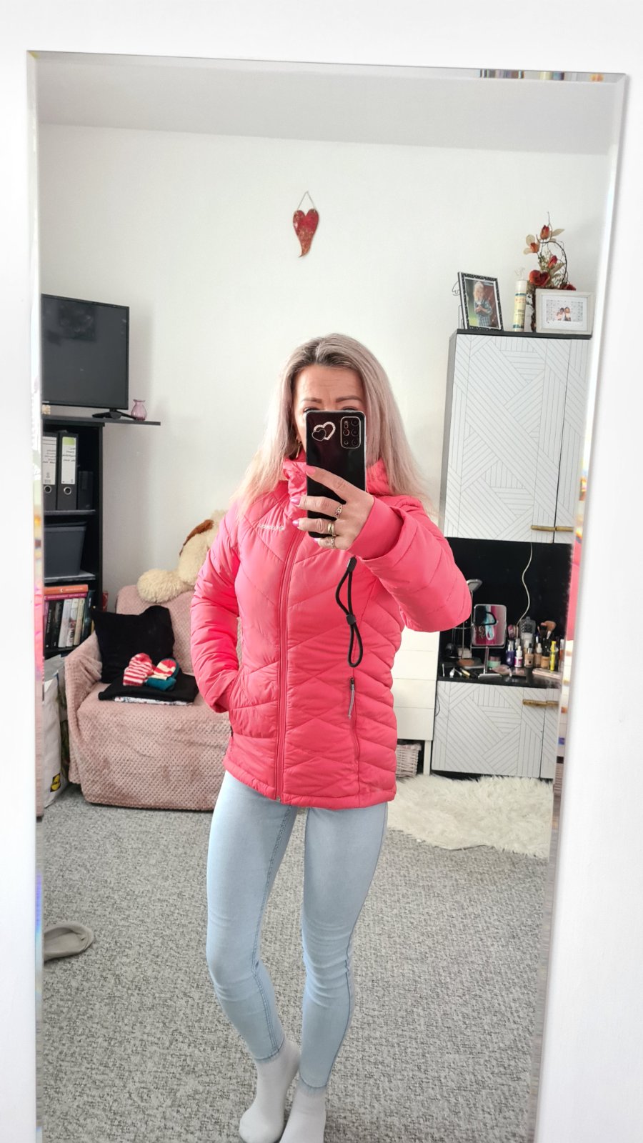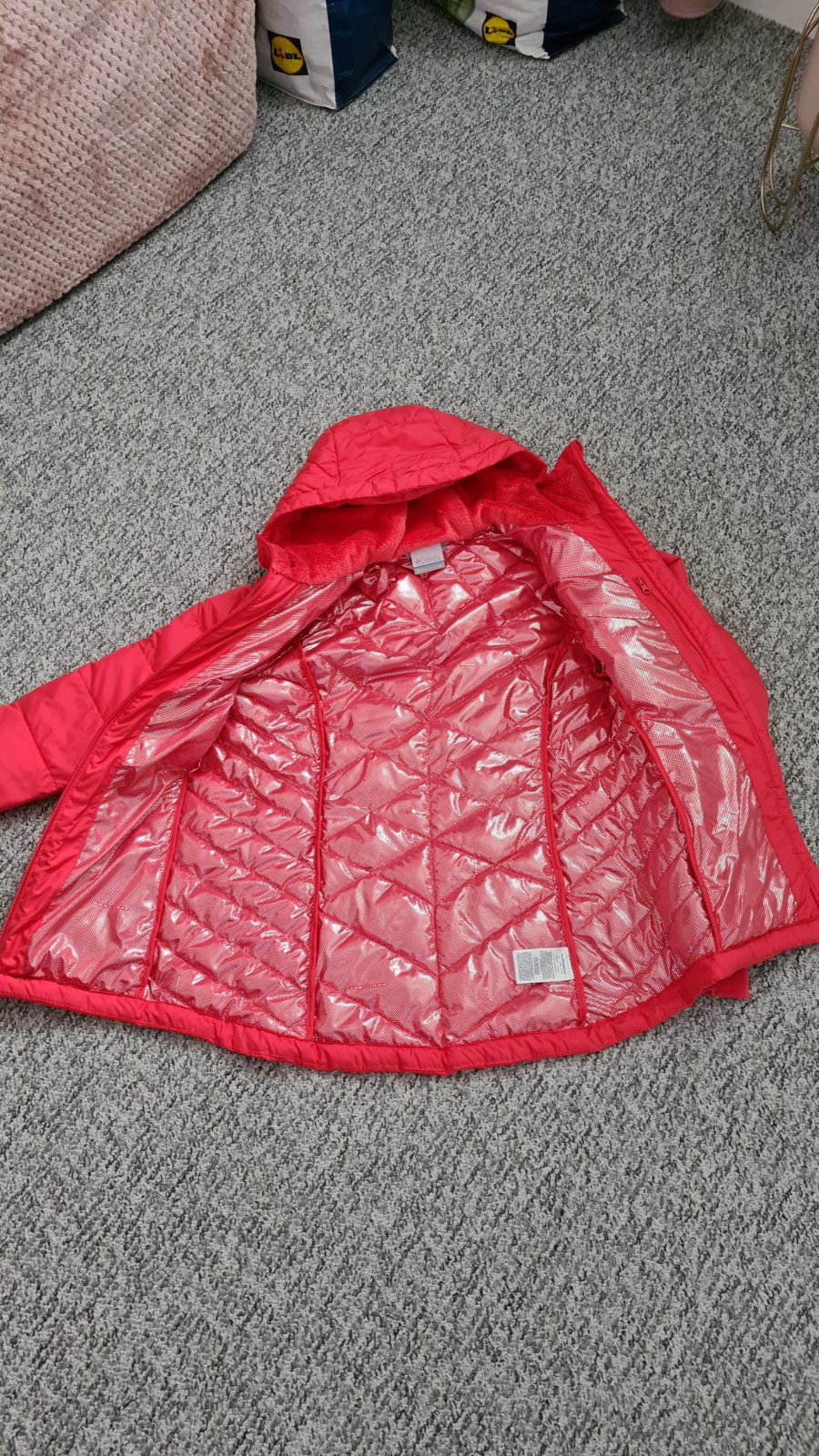 Farba je lososovo ružová,veľmi ťažko ju ide odfotit