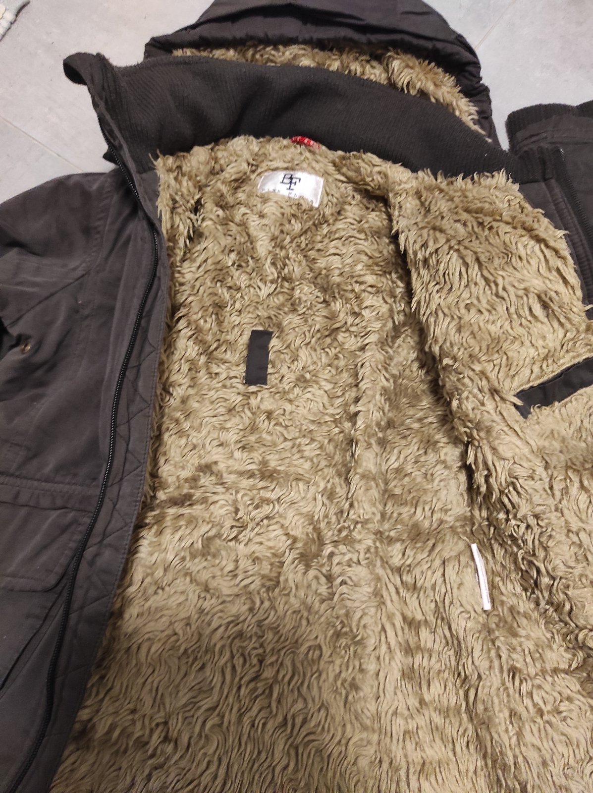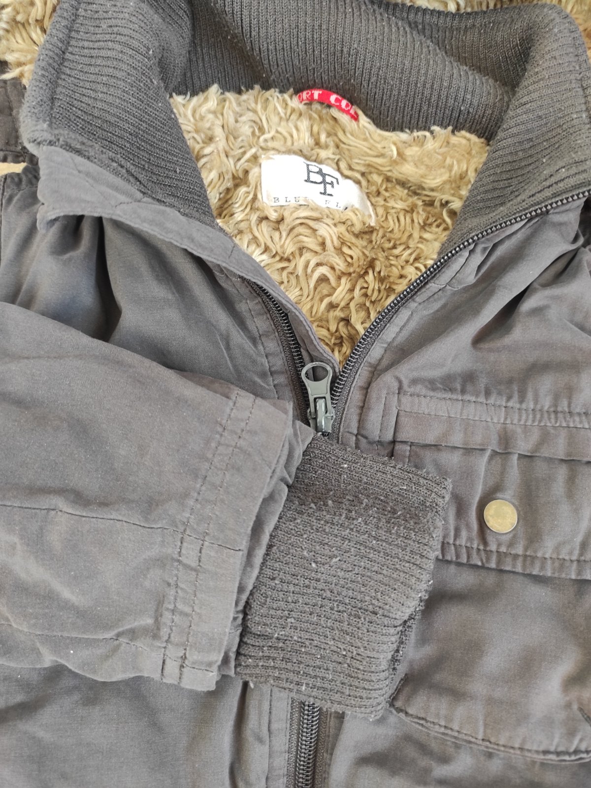 Zimna bunda s odnimatelnou kapucnou, na rukavoch patenty. V dobrom stave, trosku sa zacal strapkat zips dole, odfotila som to. Zohladnene v cene.