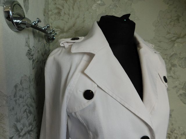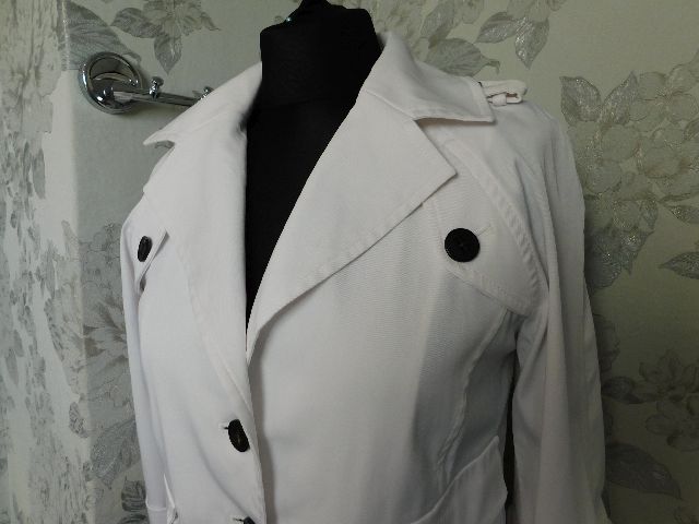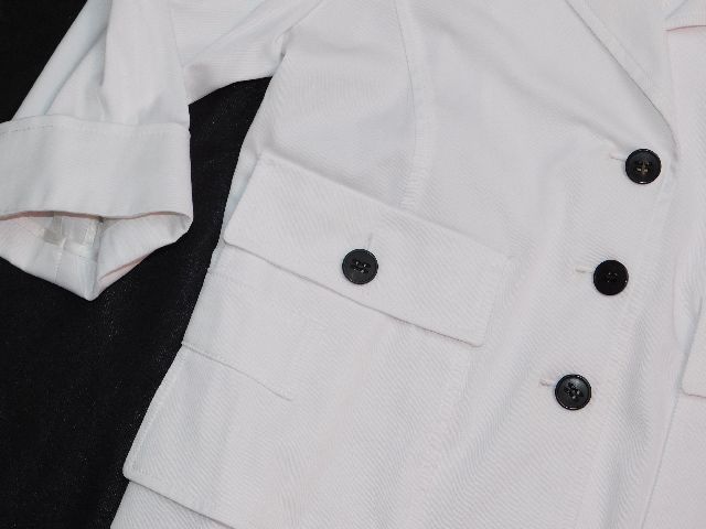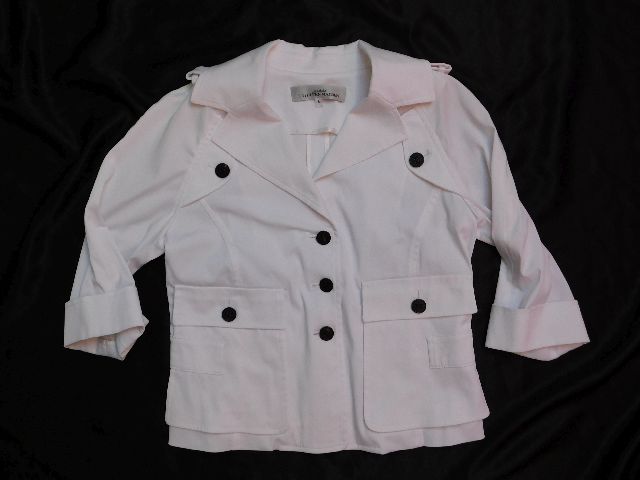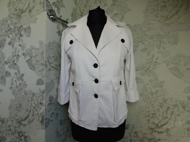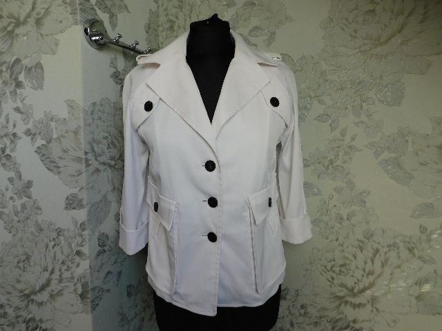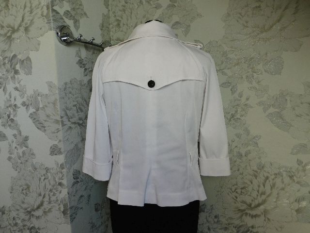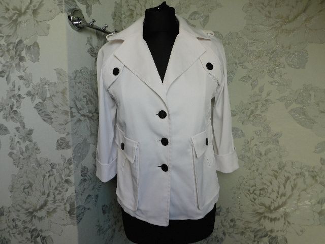 Luxusny damsky strečovy blejzer/kabatik,bielej farby,vysokohodnotne vypracovanie.62%polyester,32%cotton,3%elastan.ako novy. j22